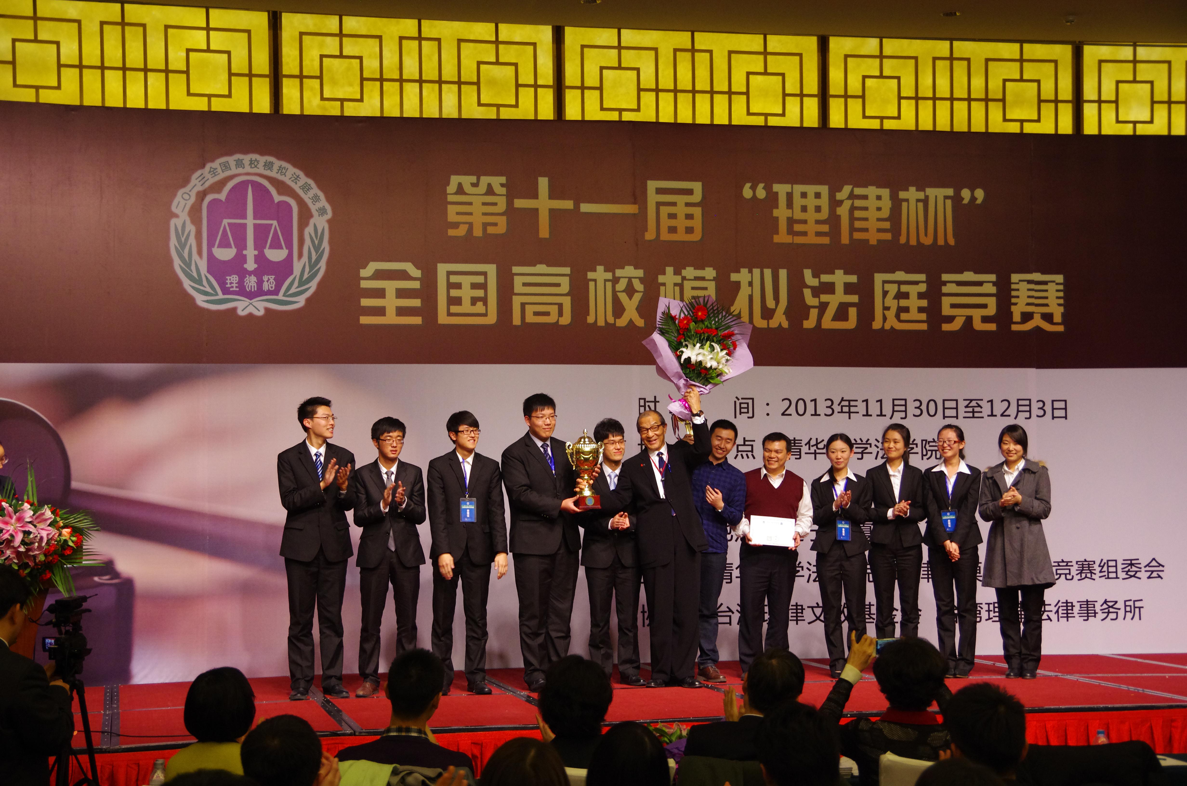 2013年12月,我院学生三度蝉联理律杯全国高校模拟法庭大赛冠军
