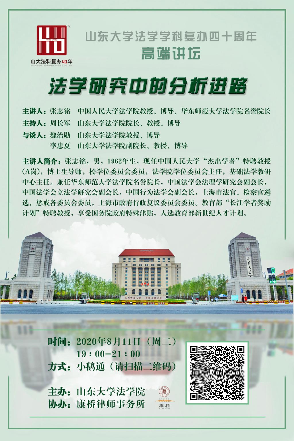 上一条:山东大学法学学科复办四十周年系列学术活动之学者风采(第一期 第8讲)