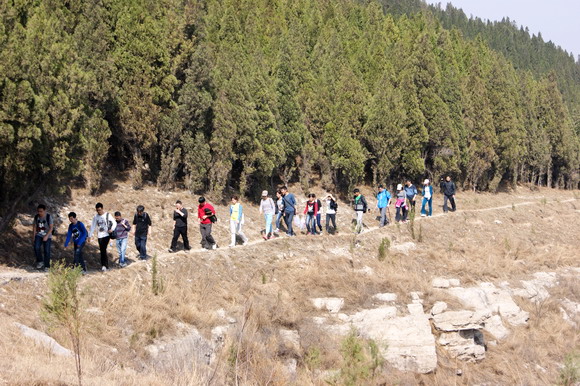 阳春三月,天气晴朗,一行人的欢声笑语在山间流转激荡。在老师的带领下,同学们有序地行走在山间,中途休息时,老师同学们三五成群,交流学习心得、学习方法,课程内容、生活经验等各方面话题。交流缩短了老师同学间的距离,也增加了同学们对老师的了解。