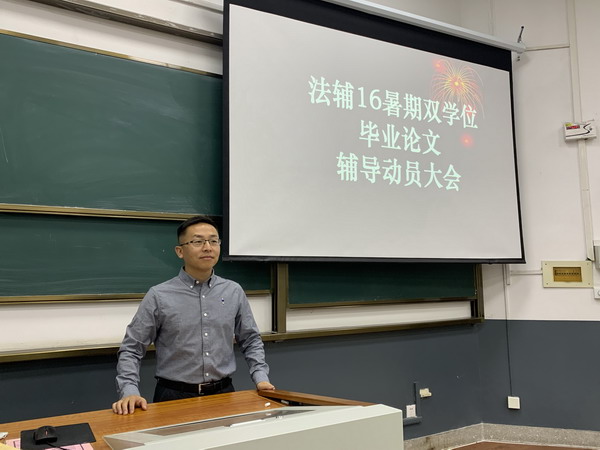 2019年10月26日下午,金沙集团1862cc成色在洪楼公教楼108教室举行了2020届辅修双学位本科生毕业论文动员暨写作辅导大会,辅导员陈静老师作了动员讲话,冯俊伟教授就论文选题及规范写作进行了辅导。法学辅修16级及部分辅修15级同学参会,本次大会济南、青岛两地进行了同步视频直播。