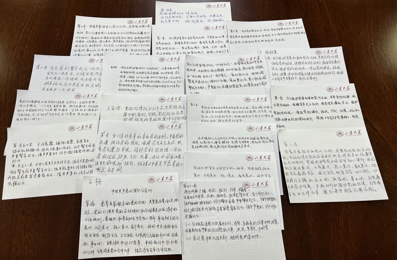 最后,支部组织开展《中国共产党纪律处分条例》接力摘抄活动,在抄写的过程中加深记忆、加强理解,进一步增强自身政治意识,提升党性修养和党纪意识,做到知条例、懂条例、守条例,自觉在廉洁自律上追求高标准,严守党纪,远离违纪红线,真正做一名合格的共产党员。
