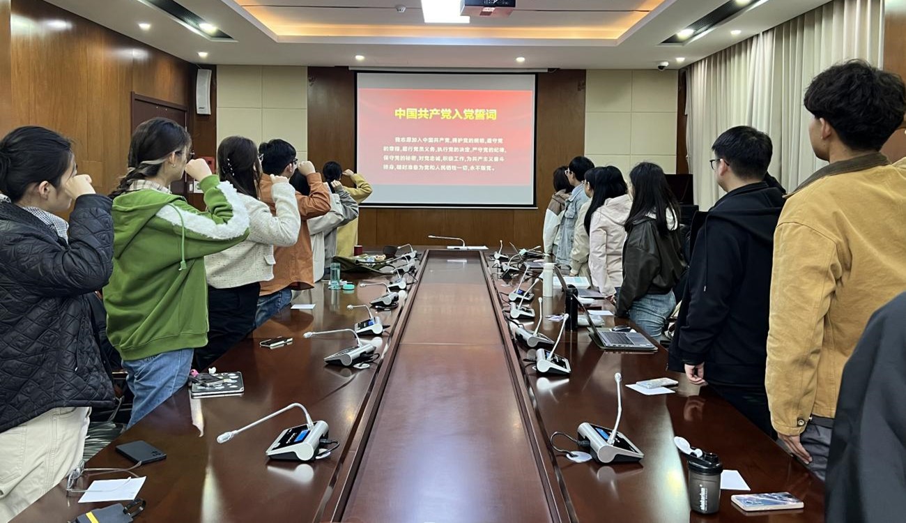 会议进行第二项,与会人员在党支部书记钟一的带领下重温入党誓词。誓词虽短,但字字铿锵有力,它宣示着法律硕士(非法学)第四党支部全体党员坚定不移听党话,矢志不渝跟党走的信念和决心。