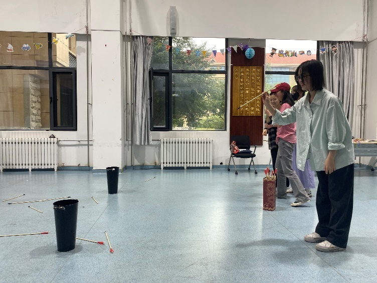 活动现场欢声笑语此起彼伏,设置了猜灯谜、党史知识问答、投壶、非遗漆扇制作等活动,大家其乐融融争相体验,同时还配备了口味多样的月饼作为奖品,吸引着众多师生热情参与。