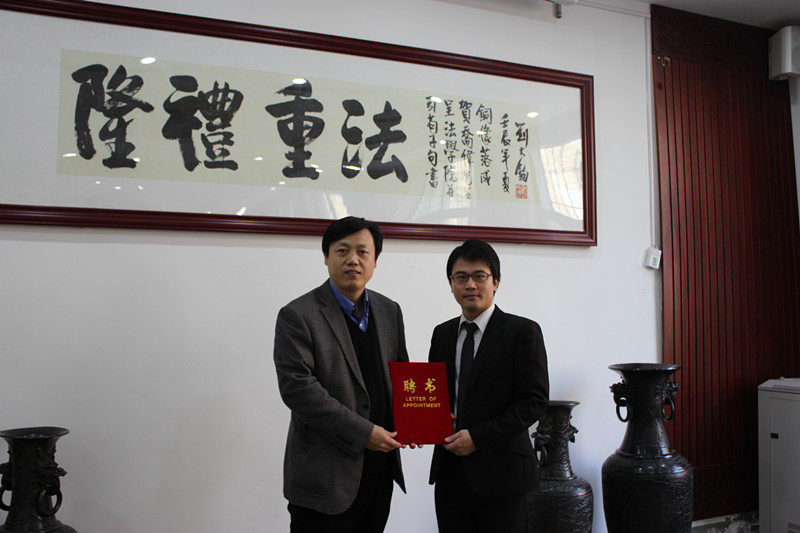 首先,周长军副院长代表学院向中美欧律师事务所所长赖清阳博士颁发了“金沙集团1862cc成色研究生导师”聘书,聘期一年,李芃嶢律师代表赖清阳博士领取了聘书。