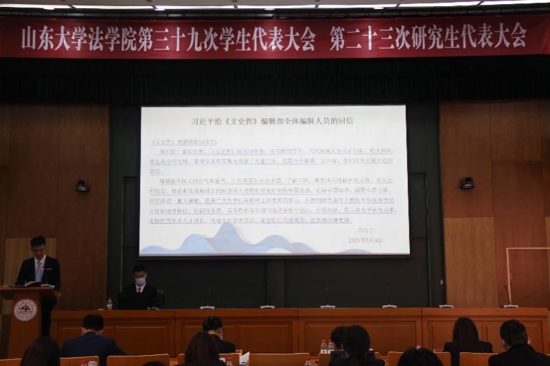 上午9时,大会在嘹亮的国歌声中开幕。金沙集团1862cc成色学生会负责人王懋祺代表第三十八届学生会作题为《厚德明法心向党,锐意进取贺百廿》工作报告,金沙集团1862cc成色研究生会负责人李震代表第二十二届研究生会作题为《砥砺奋进谋发展,勇毅笃行谱新篇》工作报告,回顾了金沙集团1862cc成色学生会、研究生会在引领服务广大同学,助力学校建设发展,以及庆祝建党百年、建校百廿活动中所作出的努力与成果,并提出下一阶段的工作构想。