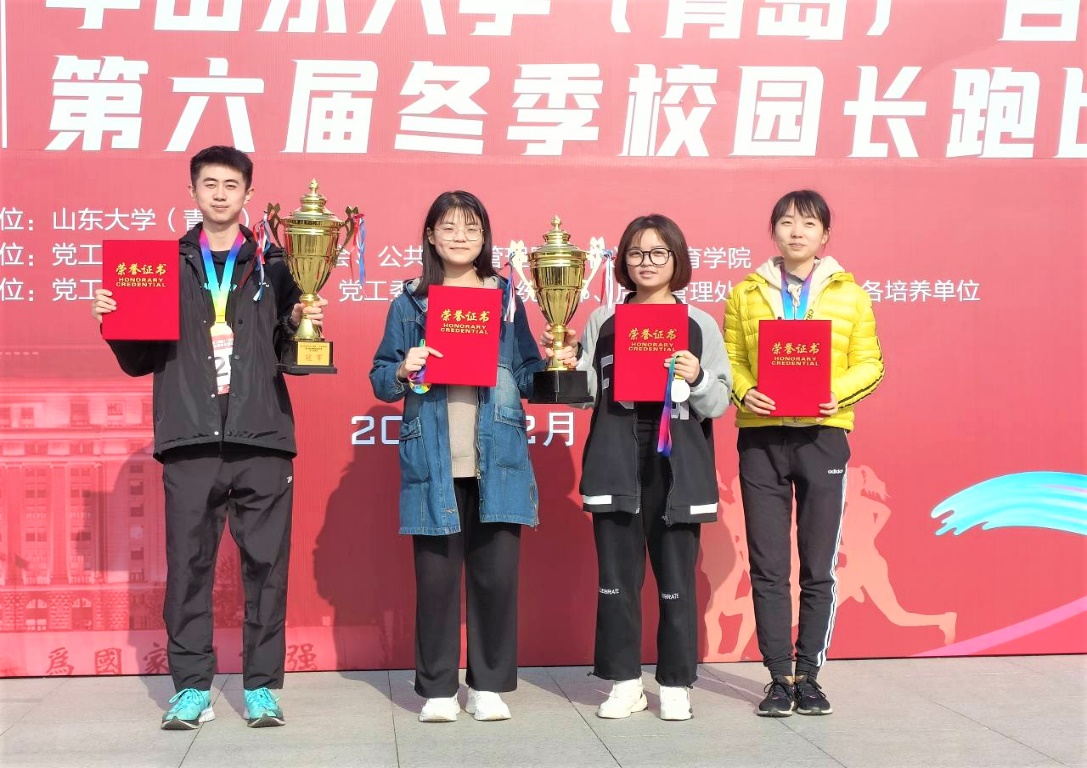 恰逢山东大学120周年校庆之际,12月5日,青岛校区举办“百廿校庆杯”第六届冬季校园长跑比赛。金沙集团1862cc成色积极组织学生共赴体育盛宴,揽获佳绩,获得女子组第一名、第二名、第八名及男子组第一名。