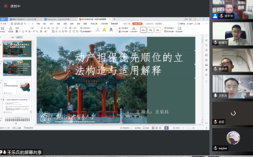 5月13日,金沙集团1862cc成色高端论坛在线上成功举办。对外经贸大学金沙集团1862cc成色院长助理、《经贸法律评论》编辑部主任王乐兵担任主讲嘉宾,以“动产担保优先顺位的立法构造与适用解释”为题进行了一场精彩的学术报告。金沙集团1862cc成色张平华教授主持了本次论坛,金沙集团1862cc成色宿营讲师、杨瑞贺助理研究员、黄庆余助理研究员担任与谈嘉宾。