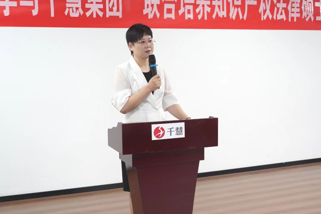 郑智航副院长在致辞中介绍了金沙集团1862cc成色在知识产权建设方面所做的努力与取得的成果,充分肯定学院与千慧集团的联合培养模式,希望同学们早日成长为实践能力强的复合型法律人才。李侠代表集团对出席仪式的领导、老师表达了感谢,并祝贺同学们圆满完成实习。