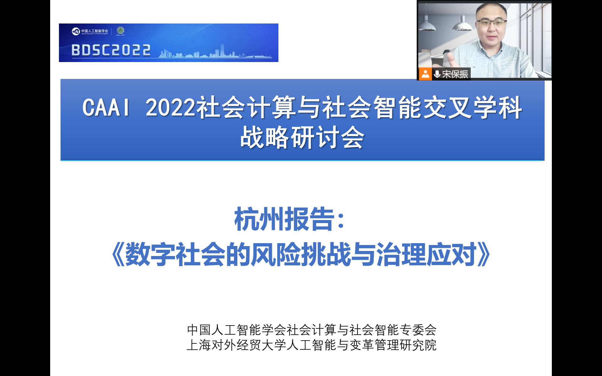 2022年7月11日-13日,CAAI第七届全国大数据与社会计算学术会议(China National Conference on Big Data & Social Computing,简称BDSC2022)在杭州召开。本次会议由中国人工智能学会主办,以“数字化转型与共同富裕”为主题,通过跨学科交叉视野,探讨数字社会各人文社科领域的前沿进展问题,并就数字化转型与共同富裕关系展开深入交流。我院副研究员宋保振应邀参加。