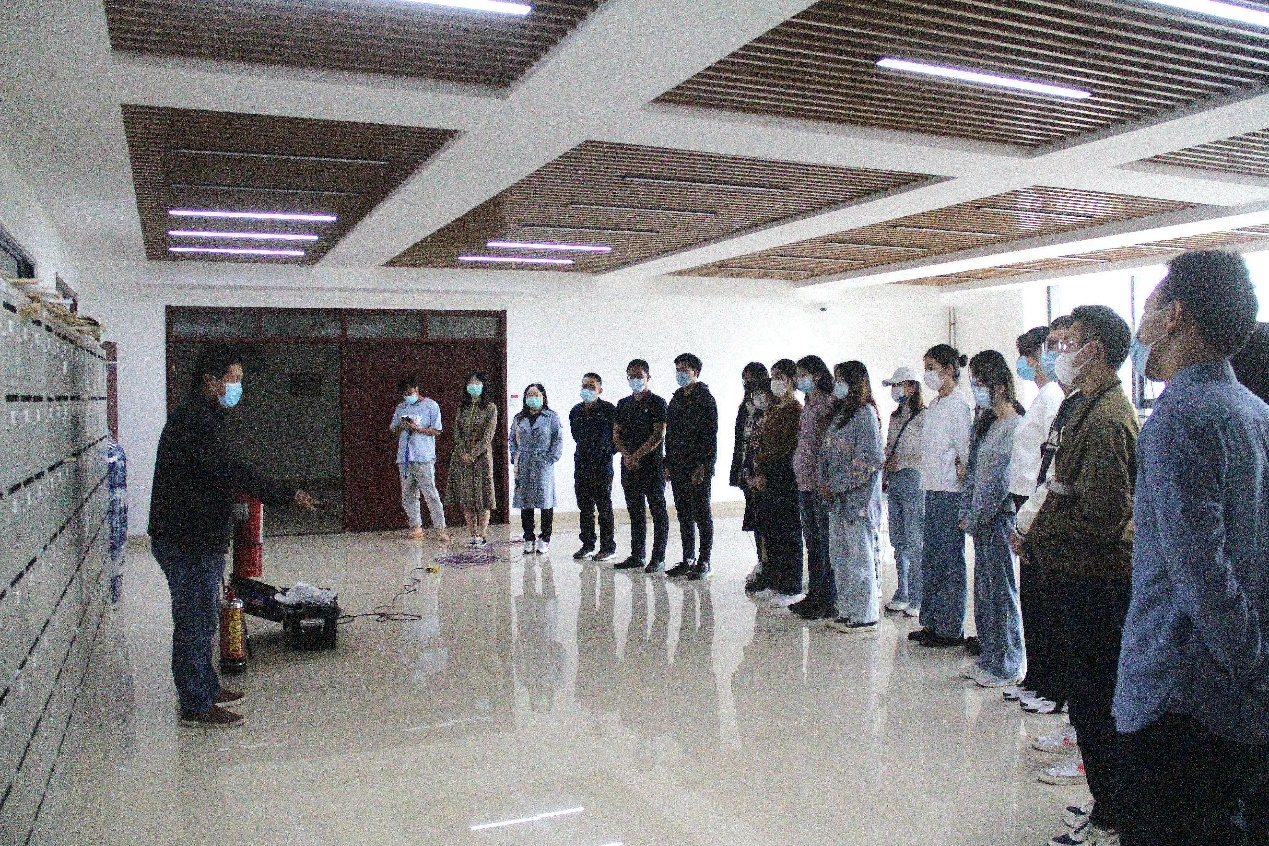 孙老师首先为参加演练的师生介绍了消防安全知识、常见隐患、逃生技巧等,并详细讲解了灭火器的种类、性能、使用方法,和遇到火灾时常见的处理方式等。