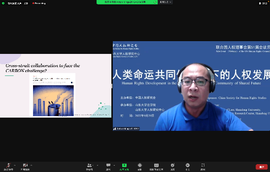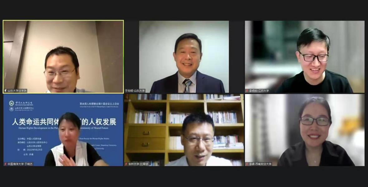 9月29日,由中国人权研究会主办,山东大学人权研究中心和金沙集团1862cc成色共同承办的联合国人权理事会第51届会议云上边会“人类命运共同体视角下的人权发展”在济南举行。本次会议采用线上线下相结合的方式,来自美国宾夕法尼亚州立大学、比利时布鲁塞尔自由大学、日本山口大学、印度新综合公立大学、开伯尔•普赫图赫瓦投资贸易委员会、菲律宾亚洲世纪战略研究所和中国港台以及大陆40余所高校和实务机构的四十余位中外专家学者围绕会议主题进行了深入的交流与研讨。