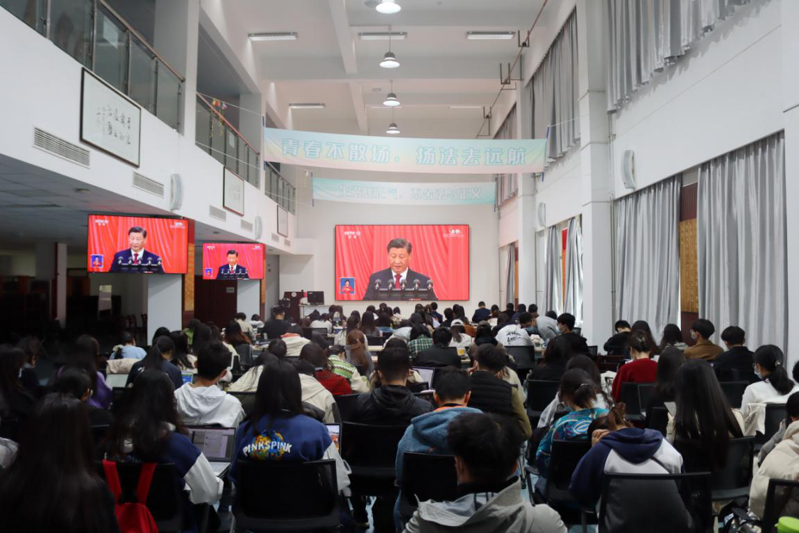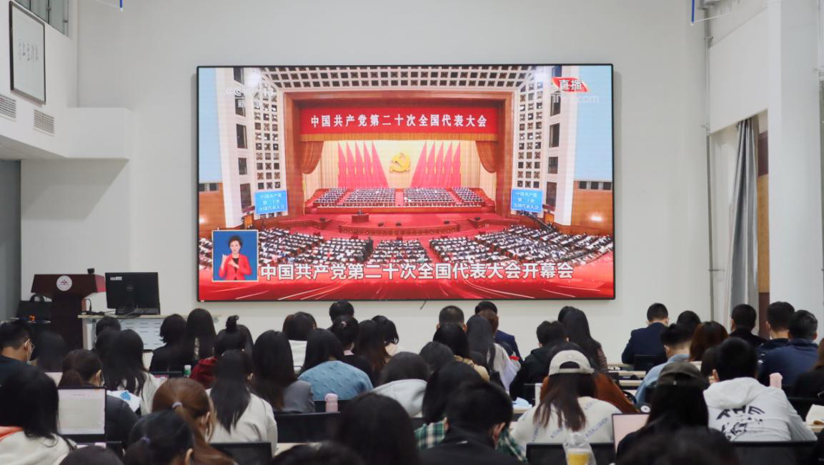 中国共产党第二十次全国代表大会10月16日上午10时在北京人民大会堂隆重开幕,金沙集团1862cc成色党委组织党员师生认真收看了开幕会直播。为方便师生观看党的二十大开幕会直播,学院专门设置两个主会场和若干分会场,组织党员干部、党员教师代表、学生代表、支部骨干、入党积极分子200余人在现场集中收看党的二十大盛况,聆听习近平总书记的报告。