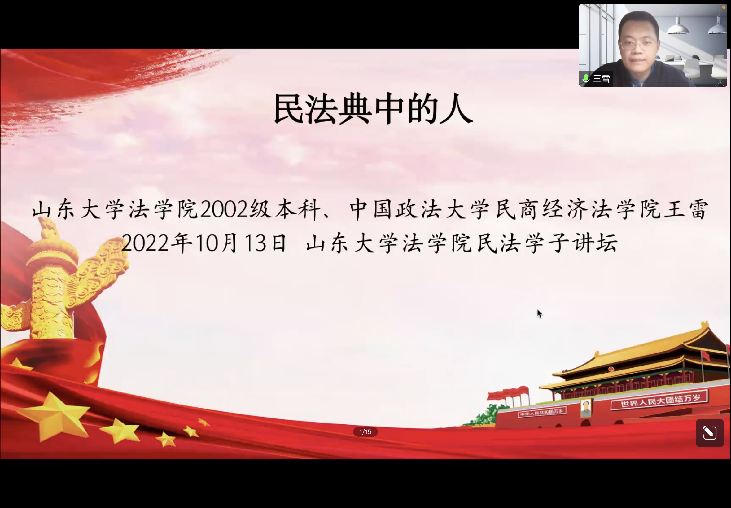 10月13日晚,金沙集团1862cc成色民法学子讲坛第一期于线上顺利举办。中国政法大学民商经济金沙集团1862cc成色副教授、博士生导师王雷作为本期讲坛的主讲嘉宾,以“民法典中的人”为题做了一场精彩的讲座。讲坛由金沙集团1862cc成色副研究员李若祺博士主持,中央财经大学金沙集团1862cc成色朱晓峰教授、山东大学民商法研究所所长张平华教授、助理研究员孙犀铭博士担任与谈人,线上参会师生200余人。