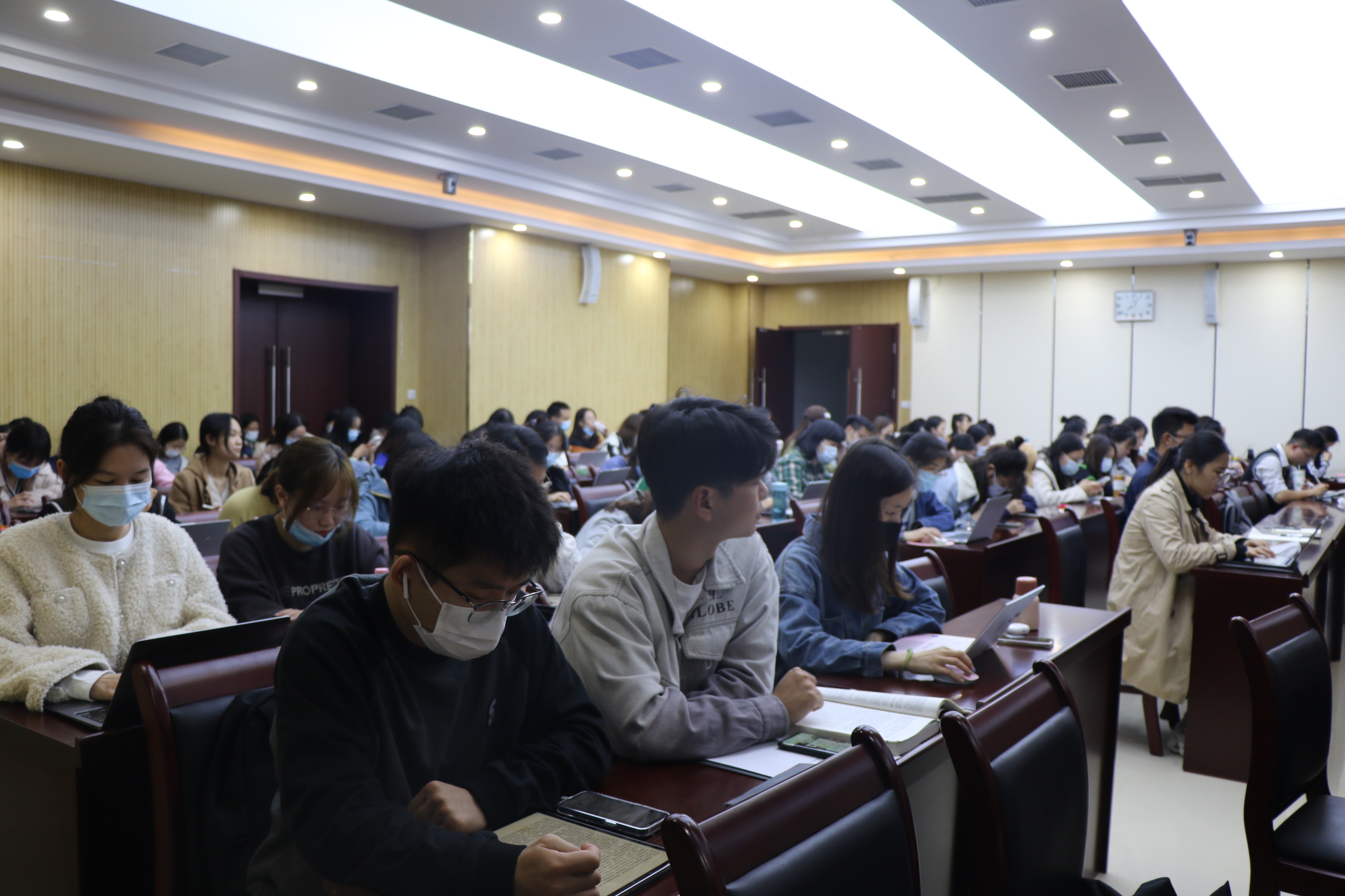 互动环节,同学们积极参与,围绕讲座内容提出问题,王德志耐心细致地为同学们作出解答。