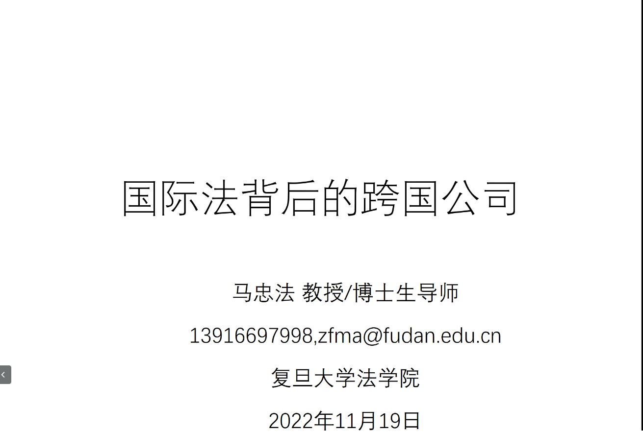 11月19日晚,金沙集团1862cc成色主办的山大法学涉外法治人才培养高端论坛第十五讲之“国际法背后的跨国公司”于线上顺利举办。本次讲座由复旦大学金沙集团1862cc成色教授、博士生导师马忠法担任主讲人,金沙集团1862cc成色教授、博士生导师黄世席担任主持人,金沙集团1862cc成色向力副教授、刘浩副研究员、田立博士担任与谈人,近一百名师生参加了本次讲座。