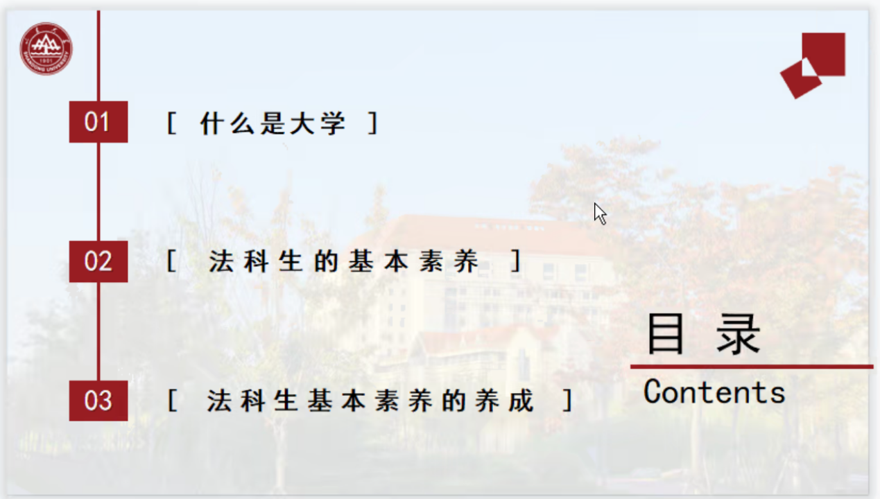 首先,对于大学到底是什么,郑智航从大学的“大”和“学”两个角度进行回应。他指出,大学之“大”非指的是面积大亦或楼房大,大学之“大”在于有大德、有大爱、有大学问、有大师。大德一方面指的是大学应当具有的担当民族责任的德性,另一方面则强调大学应与道德成为共同体;大爱指的是大学培养的学生不仅要爱自己的父母、爱自己的同学,更要爱我们的祖国、爱整个人类;大学问,第一是指会提问的人,第二是指有深邃思想的人;大师指的是大量的学术大师,他们既有大的学问,又有大的思想。郑智航认为,大学的“学”体现在八个方面:大学是自由的乐园,有助于培养大学生的创新意识和创新思维;大学是新民的摇篮,大学的使命在于培养具有良好公民意识和法律意识以及法律思维的新民;大学是社会的灯塔,是传递价值观的地方,有助于大学生接受思想的熏陶;大学是创新的活水,有助于大学生树立危机意识,培养新的见解;大学是真理的福地,有助于大学生树立怀疑的精神不断追求真理;大学是知识的源泉,有助于大学生对生产、创造、运用以及交换知识;大学是道德的高地;大学是良心的堡垒。其次,对于法科生应具备的基本素养,郑智航指出,第一,法科生要把自己培养成一个人,一个具有人格、人性、人样以及人生的人。人格中最重要的是人的尊严,站在法律人的角度,人格是指法律人的行为要符合法律的基本要求;人性是指人的内涵,法律的起点,是尊重人的自然欲望和需求;人样是指人的外在行为,法律人应具有符合法律规定的行为模式;人生是指人的时间性,法律人应将法律当作一种生活方式、存在样态。第二,法科生应当掌握法律知识,学习法律知识很重要的一个方面是记忆能力,当然还应该学习其他学科。第三,法科生要养成法律的智慧,学会进行利益间的衡量。第四,法科生要具有法律悲天悯人的情怀,实现正义与公平。第五,法科生要培养法律思维,包括权力服务于权利的思维、规则性思维以及法律解释的思维。最后,对于第三个问题,即法科生应如何养成基本素养,郑智航指出,法科生一方面要树立理论和实践的关系问题,在学习法律的过程中要关注法律现象、理解法律符号、掌握法律概念;另一方面则要朴实一辈子,要多读书、多思考、多讲理,讲理时应当有思想、合逻辑、重语言。