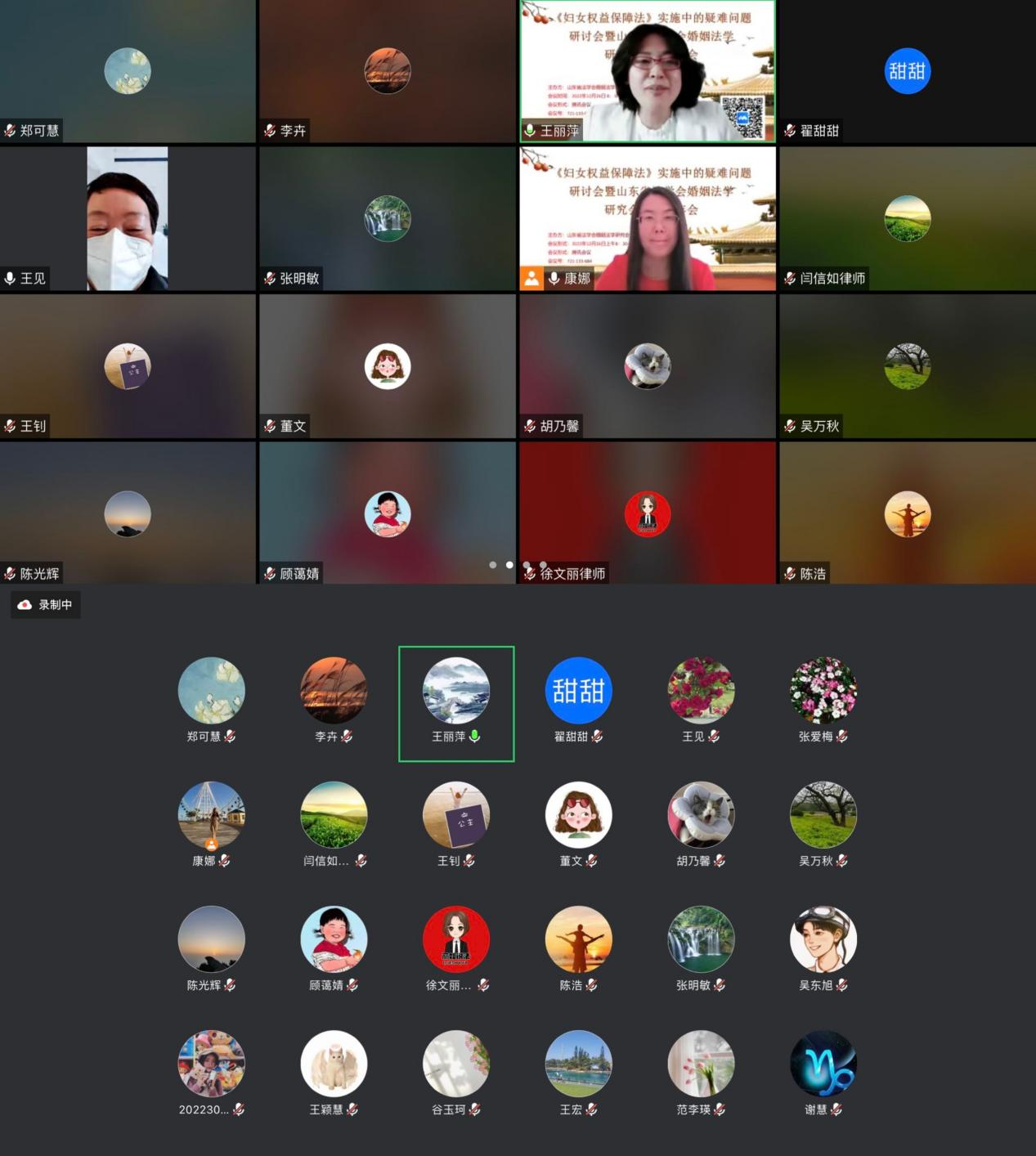 “《妇女权益保障法》实施中的疑难问题”研讨会暨山东省法学会婚姻法学研究会2022年年会在线上召开