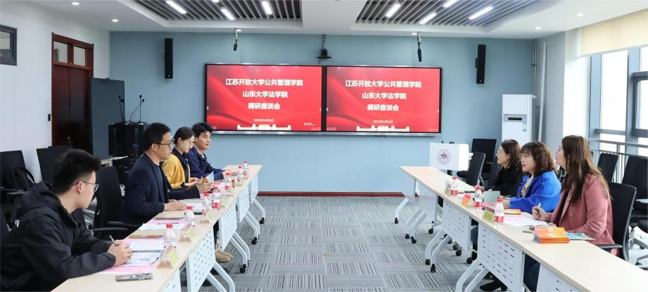 邹永厚介绍了学院学生就业和人才培养的基本情况,希望双方发挥优势,增进合作。姜璟介绍了江苏开放大学公共管理学院的办学情况和此次调研的背景,希望在学生就业、实习以及人才培养等方面开展交流。公共管理学院办公室副主任晏冰清介绍了博士生招聘、硕士生招聘及实习的条件、待遇等内容。