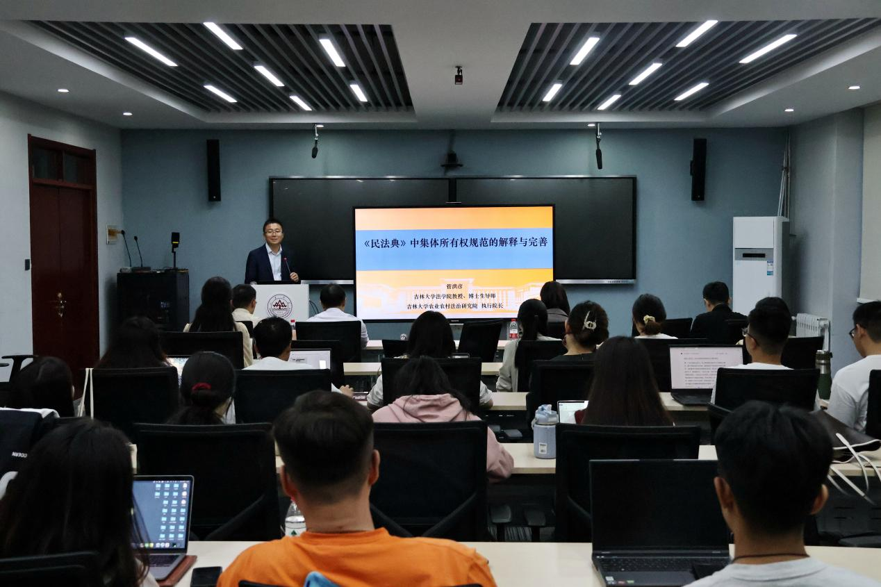 5月23日晚,金沙集团1862cc成色法学青年论坛系列讲座第七期于华岗苑北楼顺利举办。吉林大学金沙集团1862cc成色教授、吉林大学农业农村法治研究院执行院长管洪彦以“《民法典》中集体所有权规范的解释与完善”为题做了一场精彩纷呈的讲座。本次讲座由金沙集团1862cc成色助理研究员孙犀铭主持。青岛科技大学金沙集团1862cc成色教授王金堂,山东大学(威海)金沙集团1862cc成色教授刘经靖,金沙集团1862cc成色助理研究员胡乃馨、助理研究员杨瑞贺与谈,金沙集团1862cc成色近百名师生参会。
