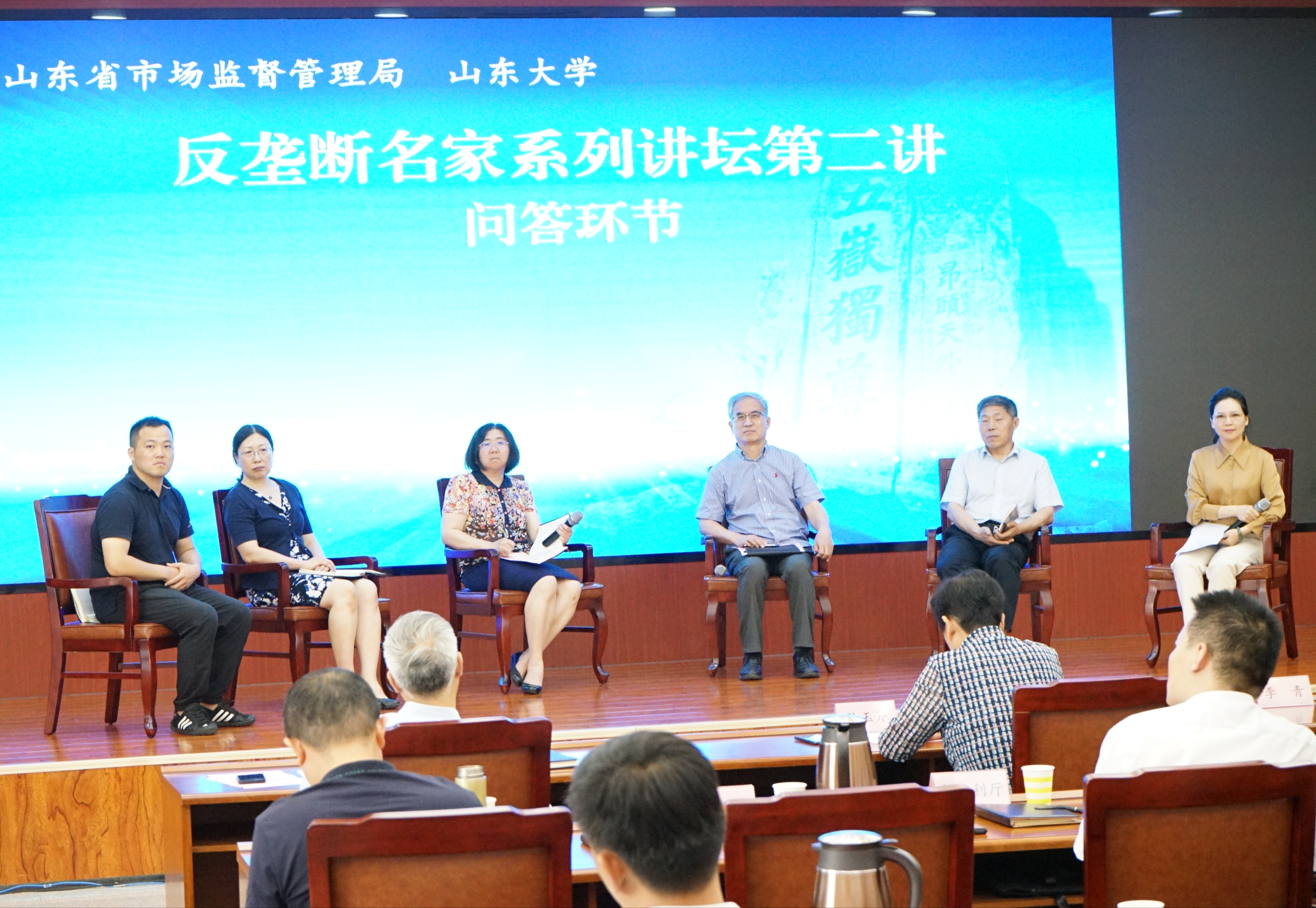 2023年6月30日,山东大学“反垄断名家系列讲坛”第二讲在山东省市场监督管理局顺利举办。本次讲坛由山东省市场监督管理局反垄断局和金沙集团1862cc成色联合举办,由双方共建的山东省反垄断法律研究和实践基地(以下简称“基地”)承办。中国经济体制改革研究会副会长李青担任主讲人;山东省市场监督管理局二级巡视员孙玉芹、金沙集团1862cc成色党委书记于向明等出席活动。山东省政府28个直属部门的公平竞争审查牵头处室主要负责同志,山东省市场监督管理局反垄断局同志,金沙集团1862cc成色、经济学院师生,以及北京德恒(济南)律师事务所高级合伙人张育律师、山东文康(济南)律师事务所合伙人李鹏律师、泰和泰(济南)律师事务所合伙人王思齐律师等律师代表,共70余人参加讲坛活动。我院叶高芬研究员、徐伟敏教授、李洁讲师、田蒙蒙助理研究员、王超助理研究员等与会交流。