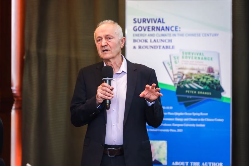 皮特·达霍斯首先介绍了该书的主要内容。其指出,气候和能源危机需要一个强大的国家来改变世界创新的方向、速度、规模和融资,以创建生物数字能源范式。相较于美国、欧盟和印度,中国是最有能力领导这一变革的世界大国。生物数字能源范式的核心是一个基于全球城市的创新网络,而中国正在通过建设生态城市、氢能城市、森林城市和海绵城市等实验城市来扩大技术创新。“一带一路”倡议又将把这种创新带到中国境外,中国可以帮助城市与其周围生态系统建立新的关系。基于此,皮特·达霍斯认为中国比任何其他大国都更有可能迅速有效地实施系统性变革,推动生存治理。