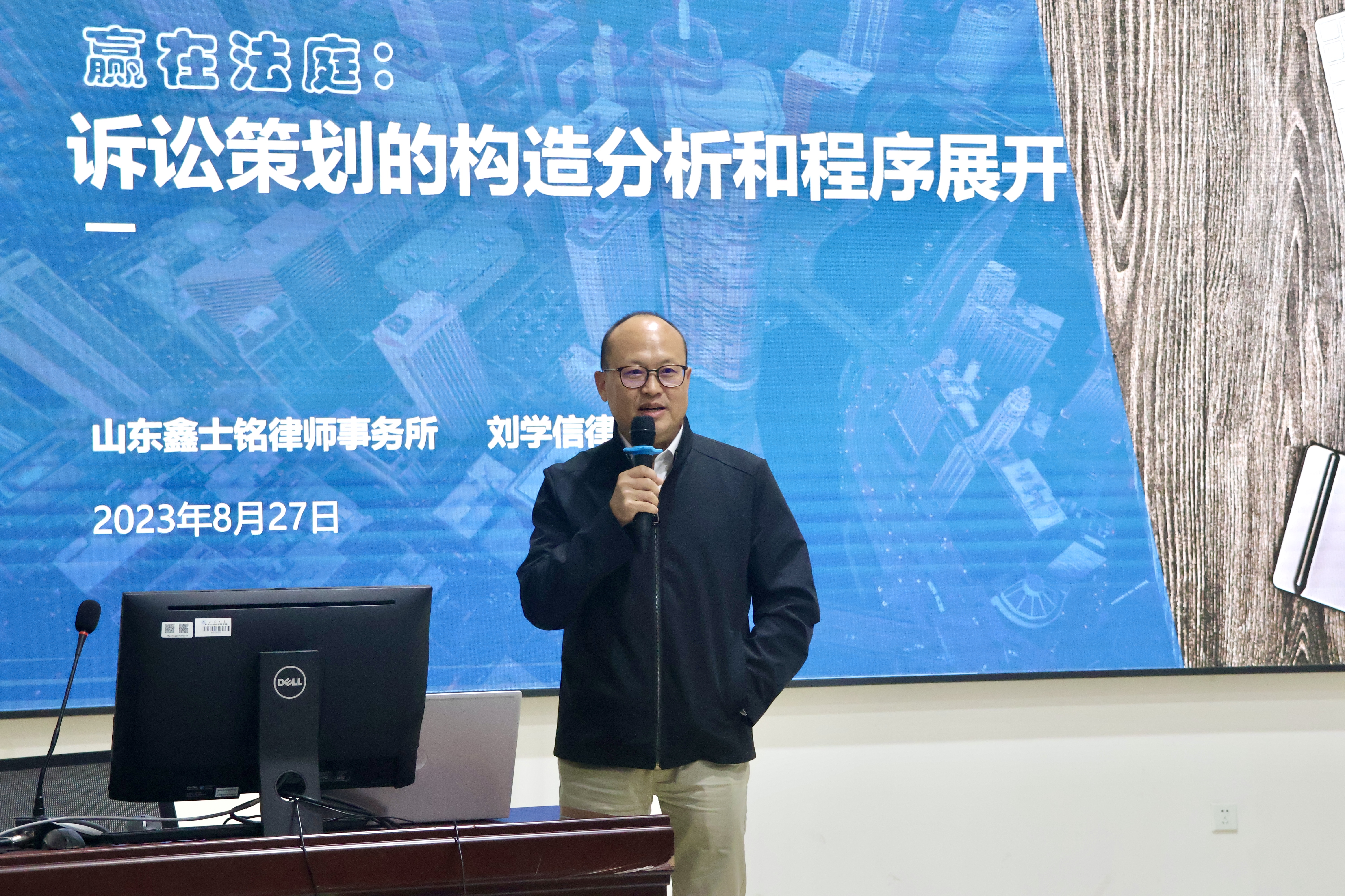 主讲人简介:刘学信,山东鑫士铭律师事务所首席合伙人,一级律师。兼任中华全国律师协会理事、律所建设指导委员会副主任,山东省人民政府法律顾问,金沙集团1862cc成色硕士研究生合作导师等职务。从事律师职业三十余年,具有丰富的执业经验,在民商事诉讼(仲裁)案件代理、刑事辩护、企业重组特别是危机企业拯救、各类法律风险的防范和化解方面均有建树。
