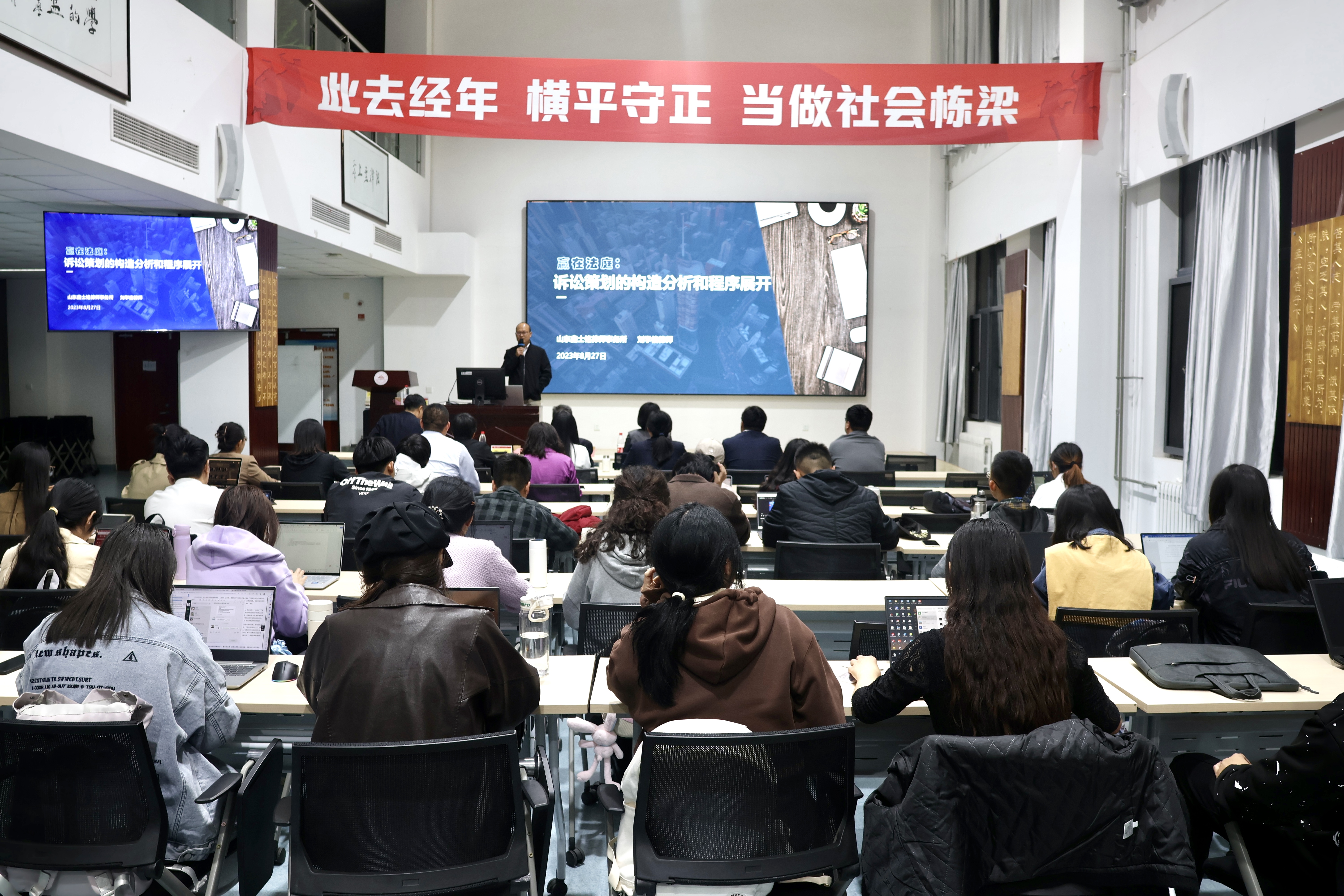 10月16日,金沙集团1862cc成色“鑫士铭法律实务大讲堂”第八讲在青岛校区华岗苑开讲。山东鑫士铭律师事务所首席合伙人刘学信以“赢在法庭:诉讼策划的构造分析和程序展开”为题作学术报告。本次讲座由金沙集团1862cc成色、金沙集团1862cc成色(威海)院长周长军教授主持,金沙集团1862cc成色荣聘教授郭明瑞,山东鑫士铭(青岛)律师事务所主任郝玉燕担任与谈人,学院师生、即墨区政法干部和部分法律实务人员八十余人参与讲座。