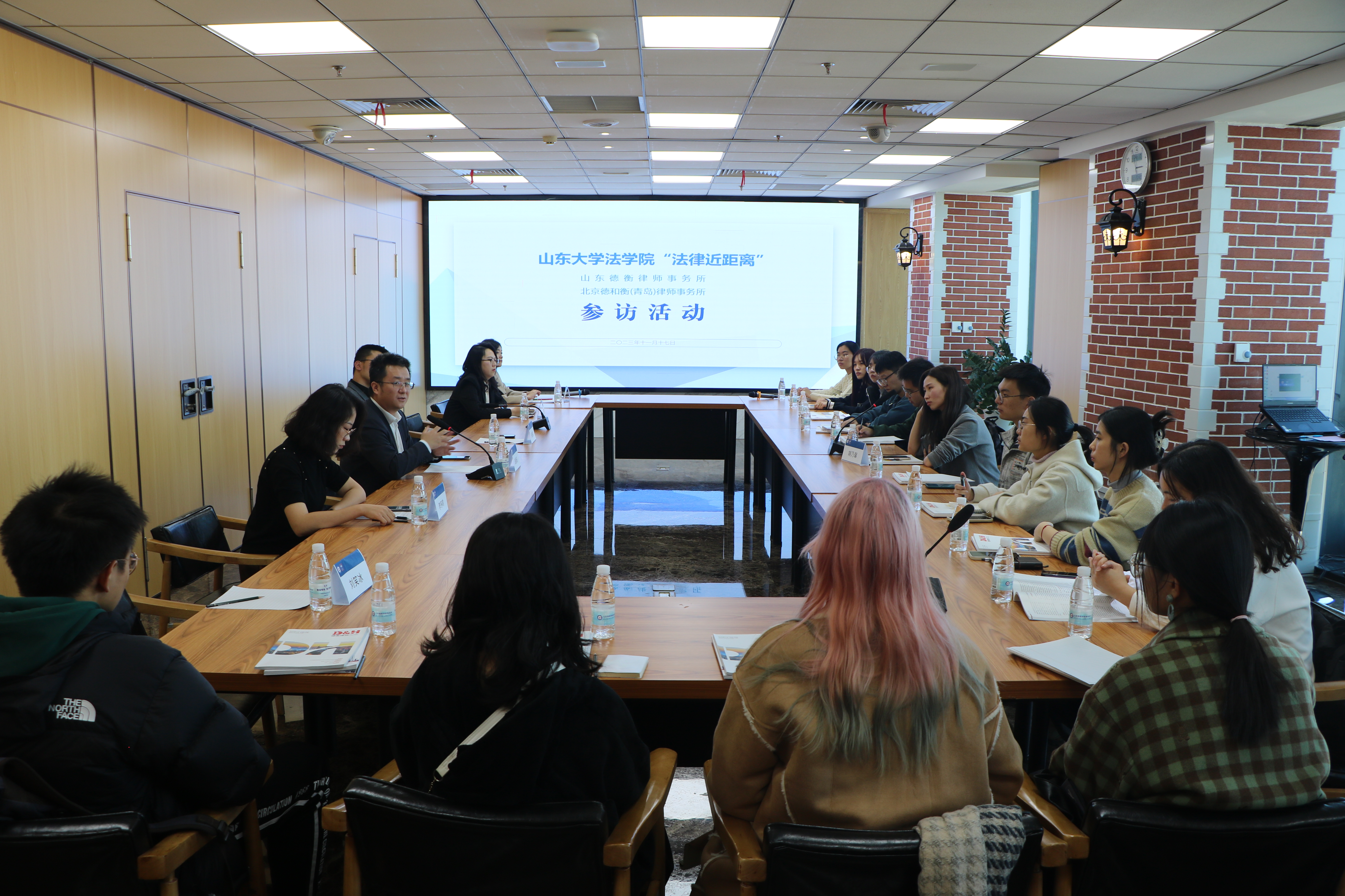 11月17日,金沙集团1862cc成色助理研究员胡乃馨带领三十余名本科生、研究生走进山东德衡律师事务所、北京德和衡(青岛)律师事务所,近距离了解律师工作、感受律所文化。山东德衡律师事务所党委委员、合伙人赵新辰律师,副主任、合伙人张昌禄律师,联席合伙人、团总支书记李冬昀律师;德和衡青岛所党支部青年委员傅亚洲律师,金沙集团1862cc成色校友刘笑冰律师、冯雨律师,党务专员石杨热情接待了参访师生并全程参与了座谈。
