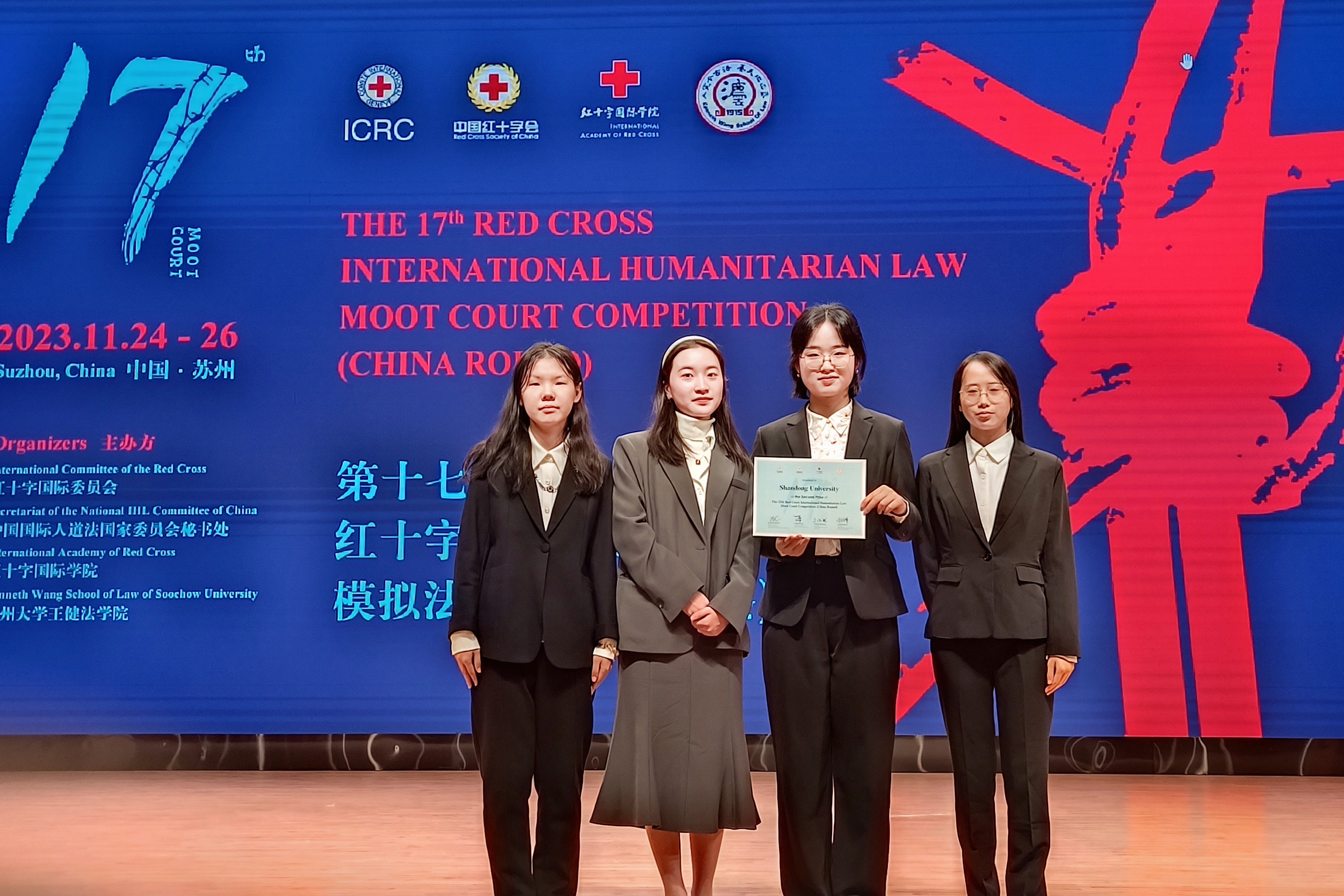 11月26日,第十七届中国大陆地区红十字国际人道法模拟法庭竞赛在苏州大学落下帷幕。本届赛事由红十字国际委员会、中国国际人道法国家委员会、红十字国际学院与苏州大学王健金沙集团1862cc成色共同主办,吸引了包括北京大学、清华大学、中国政法大学、吉林大学、上海交通大学等高校在内的57支队伍参加。经过激烈的角逐,山东大学代表队荣获二等奖。