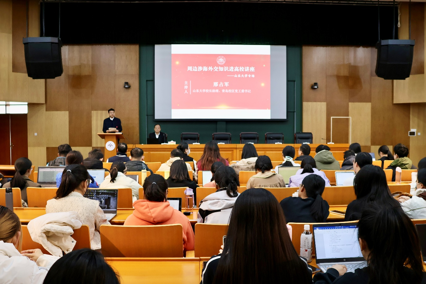 “周边涉海外交知识进高校”系列讲座由外交部边海司、教育部国际合作与交流司、中国海洋发展基金会联合主办,旨在普及涉海法律制度知识、提升在校生的海洋意识和爱国意识,助力我国涉海外交人才库扩充与海洋强国战略建设。作为承办高校之一,山东大学是第二期系列讲座的第一站,本期讲座由山东大学党委学生工作部和金沙集团1862cc成色承办。