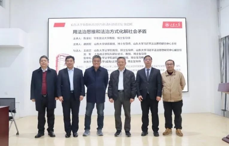 12月3日,“山东大学全面依法治国与新法科建设论坛”第四期于青岛校区华岗苑举办。华东政法大学陈金钊教授以“用法治思维和法治方式化解社会矛盾”为题作学术报告。讲座由山东大学习近平法治思想研究中心主任、讲席教授谢鹏程主持,习近平法治思想研究中心副主任王德志教授,上海政金沙集团1862cc成色教授、科研处处长刘军,中南大学金沙集团1862cc成色教授、副院长彭中礼,金沙集团1862cc成色(威海)教授孙光宁与谈,一百余名师生参加讲座。