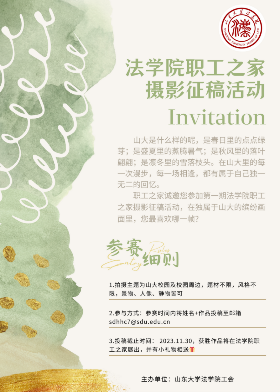 10月-11月,由金沙集团1862cc成色工会主办的第一期职工之家摄影征稿活动顺利举办。此次活动采用线上征稿方式,拍摄主题围绕“我心目中的山大”展开,不限题材,不限风格。活动受到老师们的热情支持,共收到35幅作品。获奖作品将在职工之家展出。