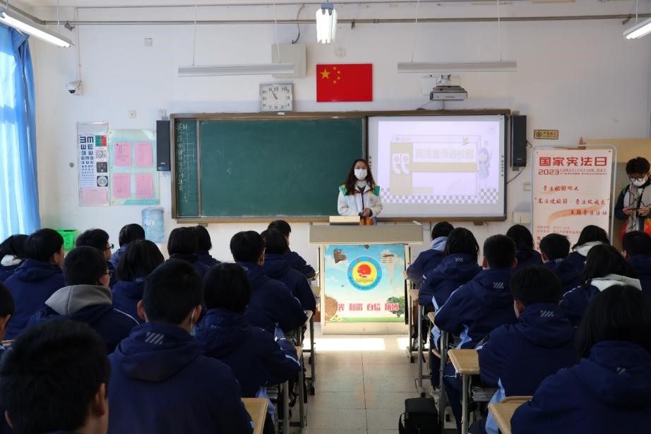 1.12月4日,山东大学学生法律援助中心志愿者前往青岛超银学校崂山校区,为七年级学生开展校园普法活动。志愿者结合初中生的身心发展特点,用通俗易懂的语言向学生解读宪法权利和义务的关系。通过真实案例,以互动问答的形式向学生阐释相关法条,讲解面对校园霸凌的正确态度和处理方式,提升中学生自我保护意识,为创建安全、和谐、文明的校园环境,保障学生的健康、快乐成长提供法律保障。
