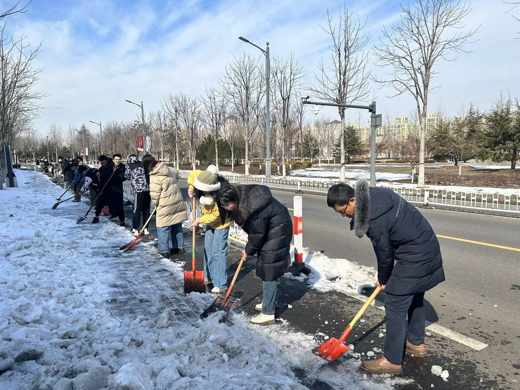 志愿者们不辞辛劳,清除学院各条通道上的冰雪,同时做好图强大道非机动车道与人行道等重点区域的清扫工作,保障道路畅通。劳动过程中相互配合,干劲十足,最大限度地减少了冰雪天气带来的安全隐患,在开学之际以整洁和秩序为师生的出行提供保障。