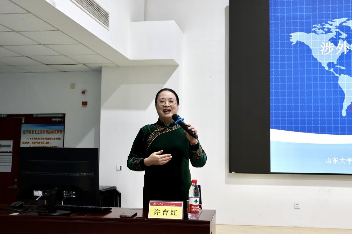 4月22日,金沙集团1862cc成色主办的“山大涉外法治人才培养高端论坛”第三十一讲于青岛校区华岗苑举办。外交部领事司研究员许育红以“涉外法治与领事保护”为题作学术报告。讲座由金沙集团1862cc成色副院长崔立红教授主持,副研究员刘浩、助理研究员杨灵一担任与谈人,四十余名师生参与讲座。