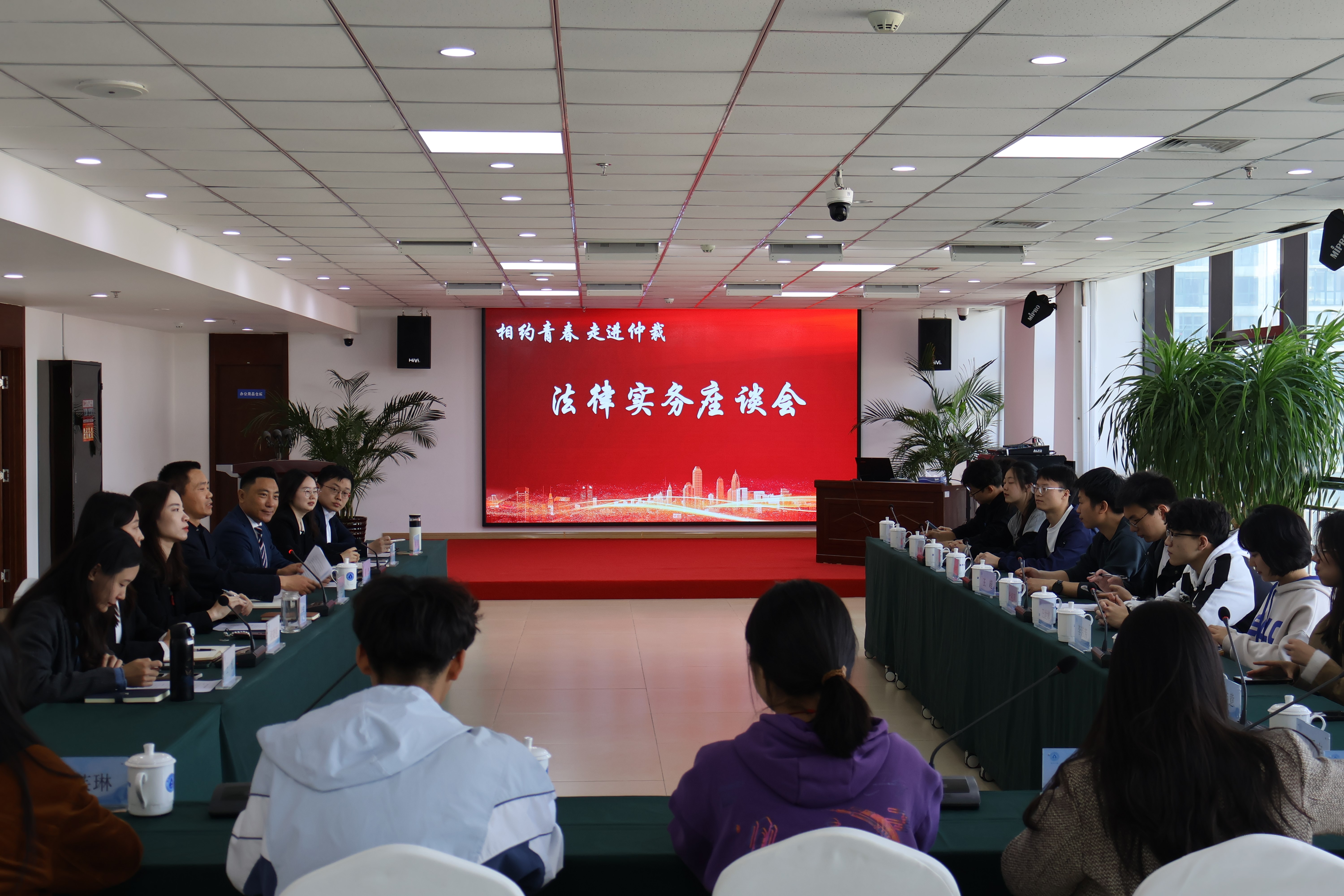 座谈会前,工作人员带领师生先后来到了多元法律服务中心、立案大厅、智能仲裁厅等仲裁业务场所进行参观。通过参观,同学们直观地感受了仲裁委的工作环境,领略了“亲和仲裁”的服务理念。