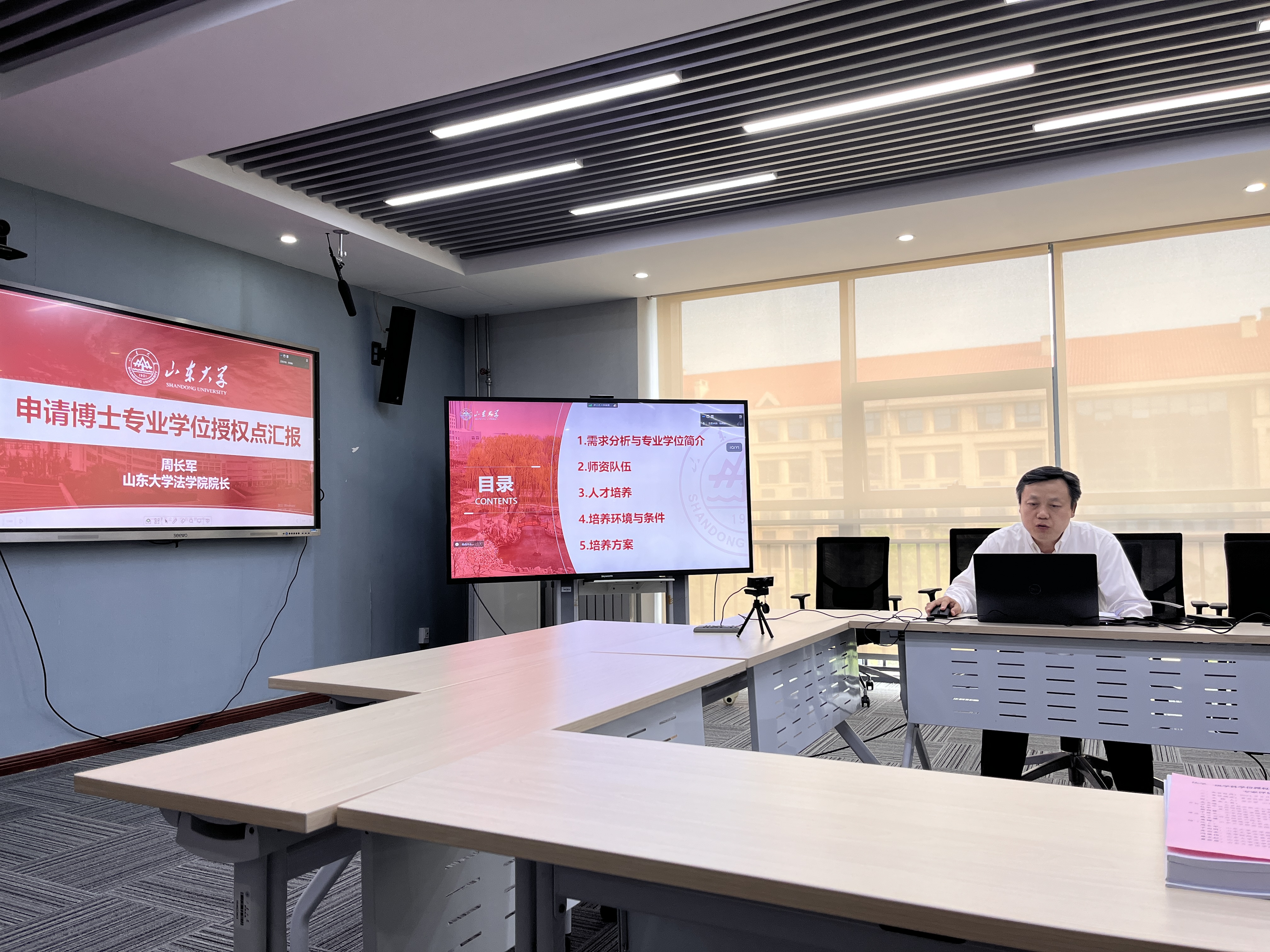 姜楠在致辞中介绍了山东大学的学位点情况。金沙集团1862cc成色院长、金沙集团1862cc成色(威海)院长周长军从需求分析与培养环境、师资队伍、人才培养、未来培养方案等方面,作了关于《申请博士专业学位授权点的汇报》,展示了学院法律博士专业学位的建设优势和扎实基础。