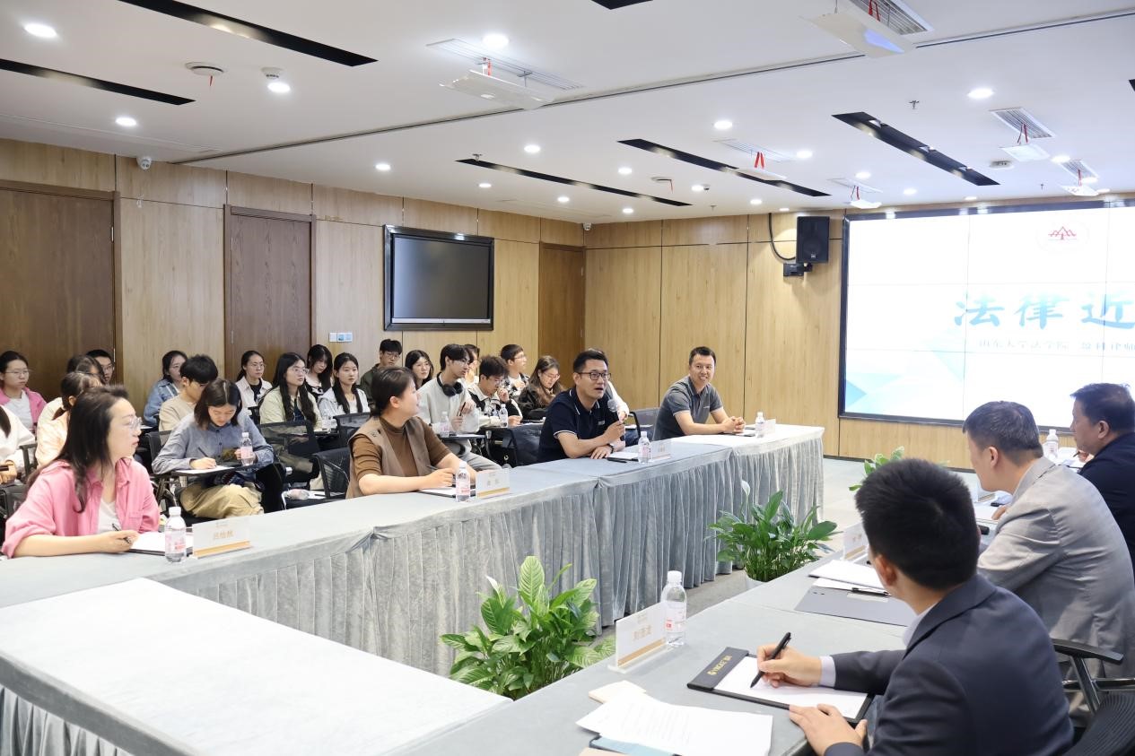 5月22日,金沙集团1862cc成色组织学生走进北京市盈科(青岛)律师事务所开展“法律近距离”活动,实地了解律所办公环境、律所文化与律师职业工作内容。学院党委副书记宋继斌,团委书记曲仪,毕业班辅导员吕怡然、付聪,北京市盈科(青岛)律师事务所党总支书记、管委会主任黄永超,青工委主任李铠,业务指导委员会副主任程俊和女工委副主任刘浩龙参加活动。