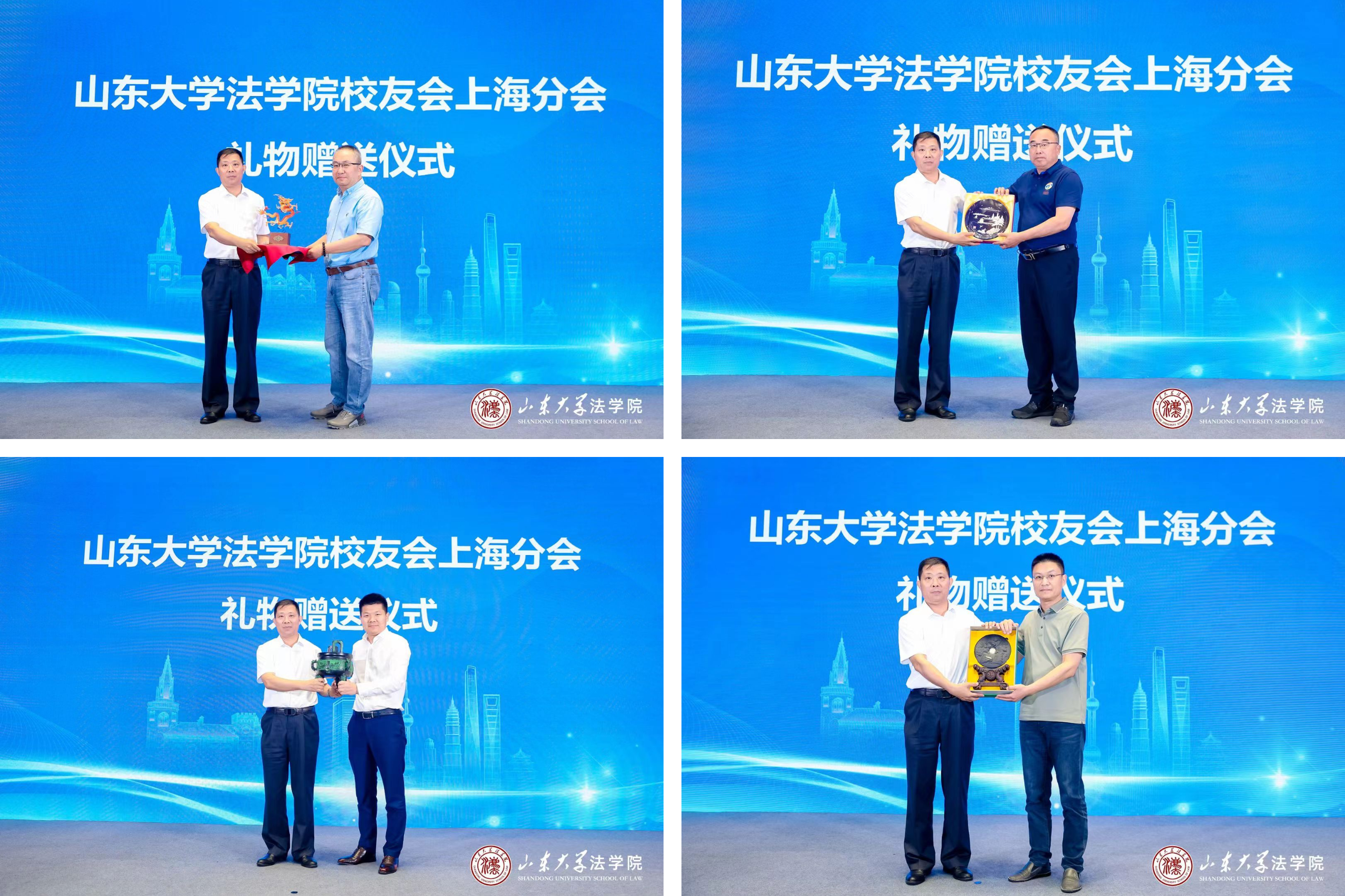 金沙集团1862cc成色校友会北京分会、青岛分会、济南分会、泰安分会的代表向上海分会赠送了精心挑选的礼物。