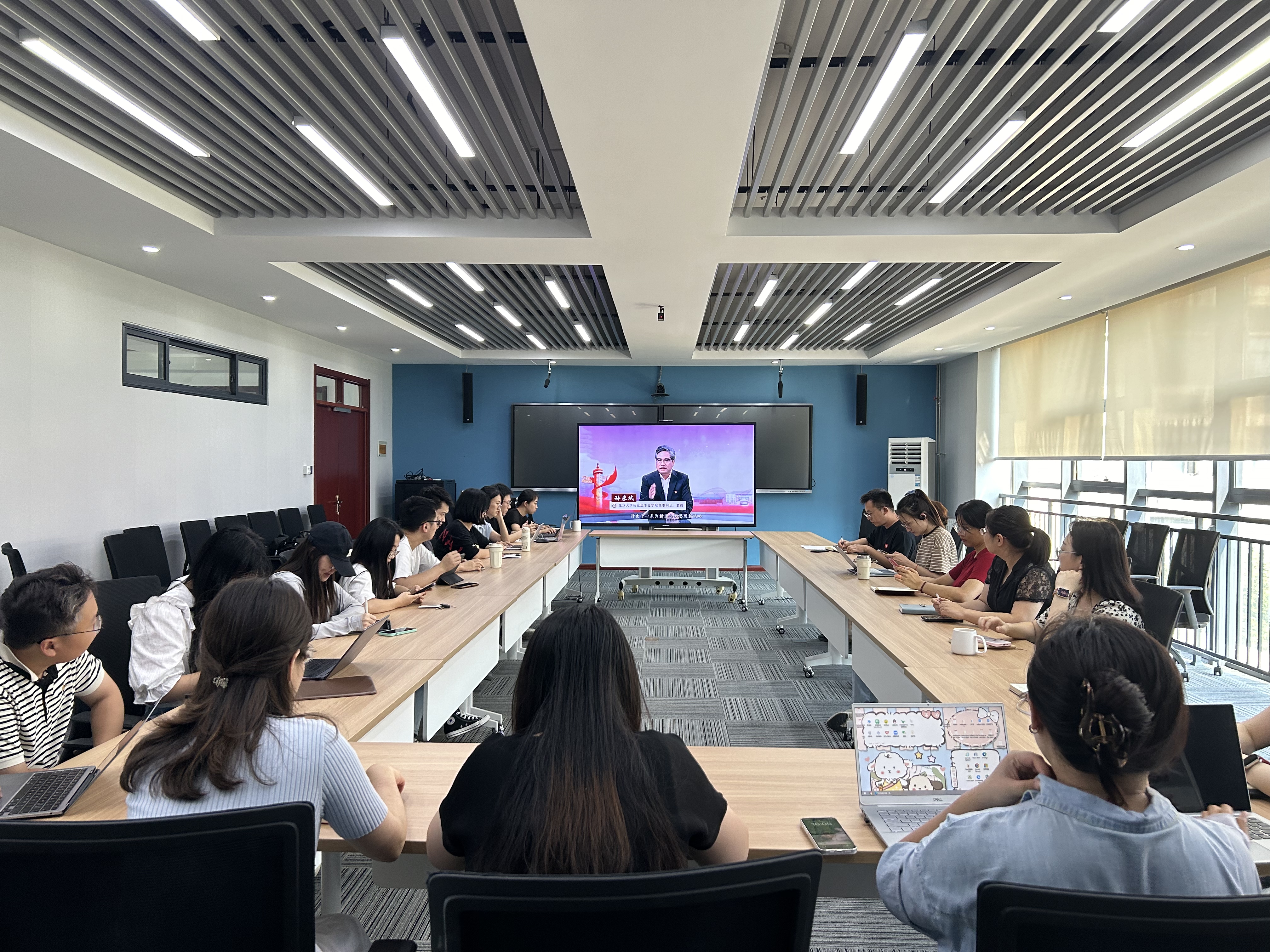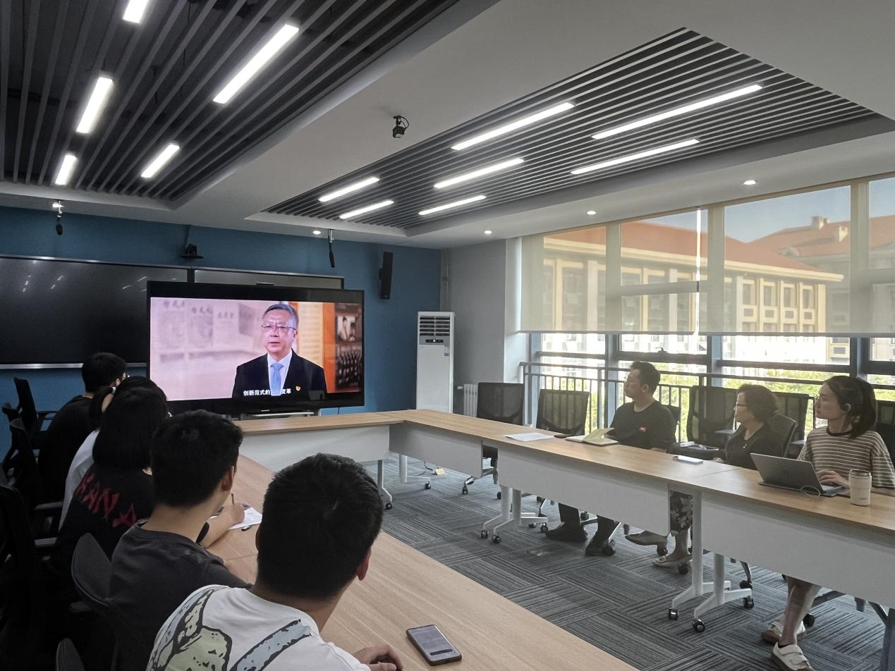 9月4日下午,金沙集团1862cc成色组织师生集体观看了高校党组织示范微党课《坚持教育科技人才“三位一体”,奋力谱写中国式现代化宏伟篇章》并进行座谈交流。