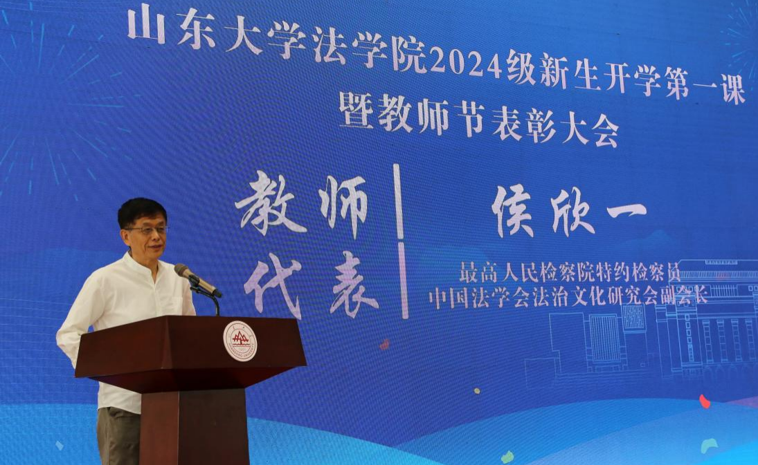 学院教师代表、最高人民检察院特约检察员、中国法学会法治文化研究会副会长侯欣一教授以“认真对待你选择的法学专业”为主题,向同学们阐述了法学专业的重要性。他倡导同学们在合法框架下保持批判性思维,在求学中驾驭自己的思和行;要区分法制与法治,从点滴养成法治信仰;要以建立平等的社会机会、平衡的社会结构为己任,为国家创造出更好的明天。