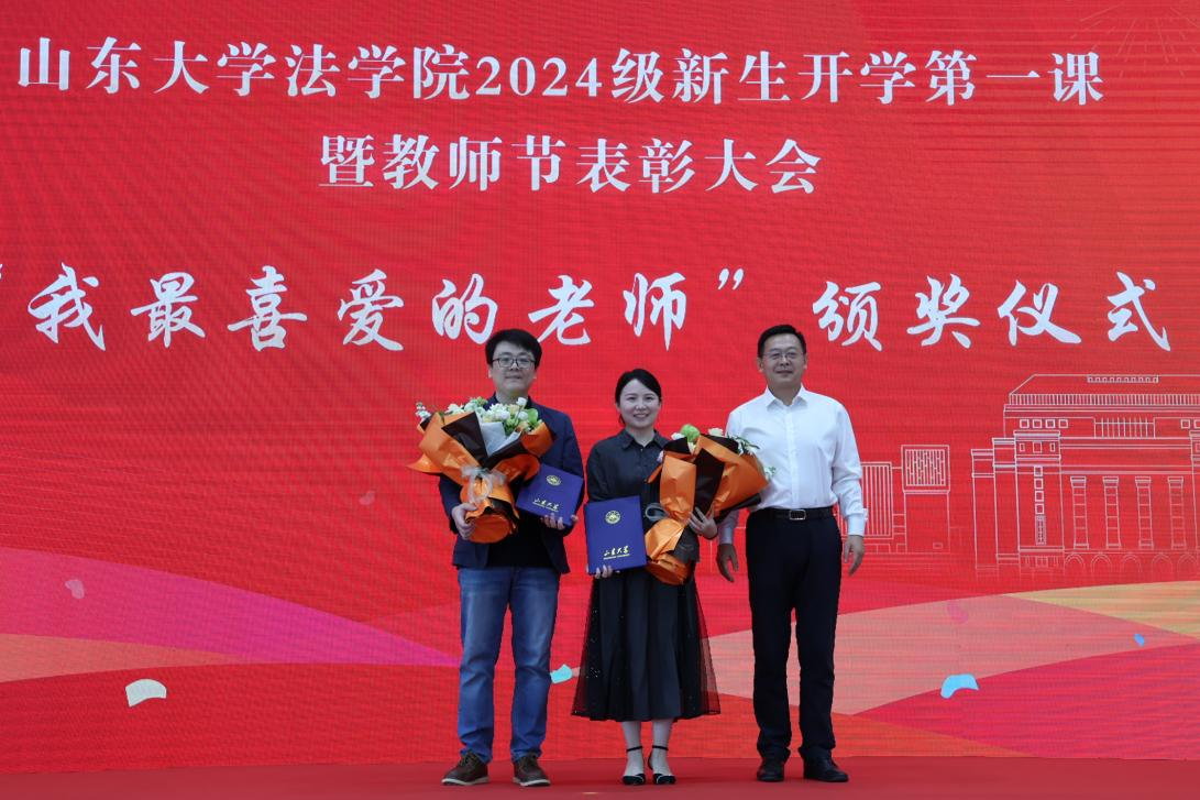 大会在庄严的国歌声中拉开帷幕。为庆祝第40个教师节,引导广大教师“弘扬教育家精神践行光荣使命”,由全体学生海选评出金沙集团1862cc成色2024年“我最喜爱的老师”。学院党委副书记董雪梅宣读获奖名单,党委书记于向明为获奖教师代表段君尚、李云龙颁发获奖证书。