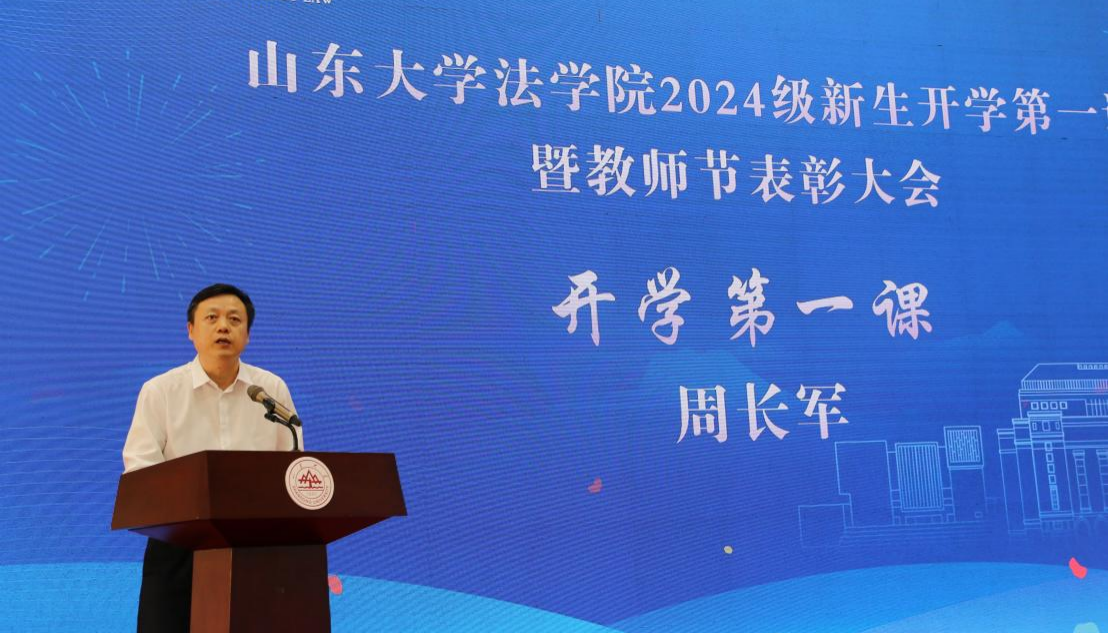 周长军为新生授“开学第一课”。他以金沙集团1862cc成色的历史引入,讲述了金沙集团1862cc成色始终坚定办学初心、创新培养模式、广泛吸纳优秀法学人才,在教学、科研等方面成绩斐然,为国家经济社会发展输送了大批高素质的法治人才。他对新生的学业发展提出四点建议:第一,紧跟时代步伐,强化科技素养。伴随着数字社会的到来,人工智能、大数据、区块链等现代信息技术的发展在推动经济创新和社会进步的同时,也会引发信息技术滥用问题,给法治建设带来风险和挑战。法科生在学习或研究生活中,应当密切关注现代信息技术的发展,强化科技素养,为我国数字法治建设贡献力量。第二,广泛学习,培养独立思考能力。在大学生活中,法科生应当博览群书,不局限于单纯的法学领域,需要打开眼界,尽可能多地涉猎一些文史哲经管政方面的经典著作,丰富知识结构,训练思维能力。第三,学好外语,提升涉外法治能力。高素质的涉外法治人才是当前国家紧缺的人才类型。法科生应当胸怀远大志向,重视涉外法治能力的培养,更好地服务国家涉外法治需求。第四,勇于实践,做到知行合一。法学是实践之学,具有很强的实践性。《中共中央关于进一步全面深化改革推进中国式现代化的决定》中明确要求,“完善以实践为导向的金沙集团1862cc成色校教育培养机制”。法科生在学习和研究过程中,应当积极参加法律实践活动,善于在实践中发现问题、分析问题和解决问题,促成理论与实践的有机结合。最后,他希望2024级新生能够“学在山大,快乐成长”,锐意进取,书写法治中国建设的山大篇章。