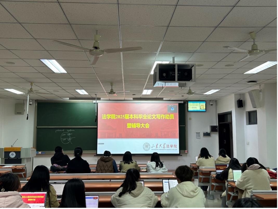10月23日,金沙集团1862cc成色2025届本科毕业论文写作动员暨辅导大会在振声苑举行,金沙集团1862cc成色副院长冯俊伟教授作动员讲话,江海洋老师作写作辅导,教务秘书范毅强主持辅导大会。金沙集团1862cc成色法学2021级、法英2020级全体本科生通过线下和线上两种途径参会。