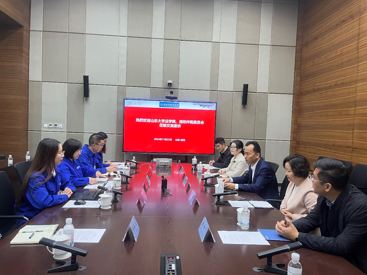 11月21日-22日,为大力加强与司法实务部门的合作,积极推进涉外法治人才基地建设,金沙集团1862cc成色副院长付本超、副处级组织员江小荃、合作发展办公室秘书刘英明组成调研组,赴潍坊仲裁委员会、潍坊市中级人民法院、潍柴动力股份有限公司和歌尔股份有限公司走访交流。