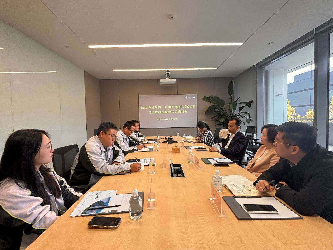 在歌尔股份有限公司,调研组与歌尔股份有限公司法务部负责人王富永等进行座谈,歌尔股份有限公司表示,其非常重视与金沙集团1862cc成色的合作交流,双方已在人才培训、就业实习等方面开展了合作,希望与金沙集团1862cc成色建立常态化合作机制,进一步拓展合作领域。