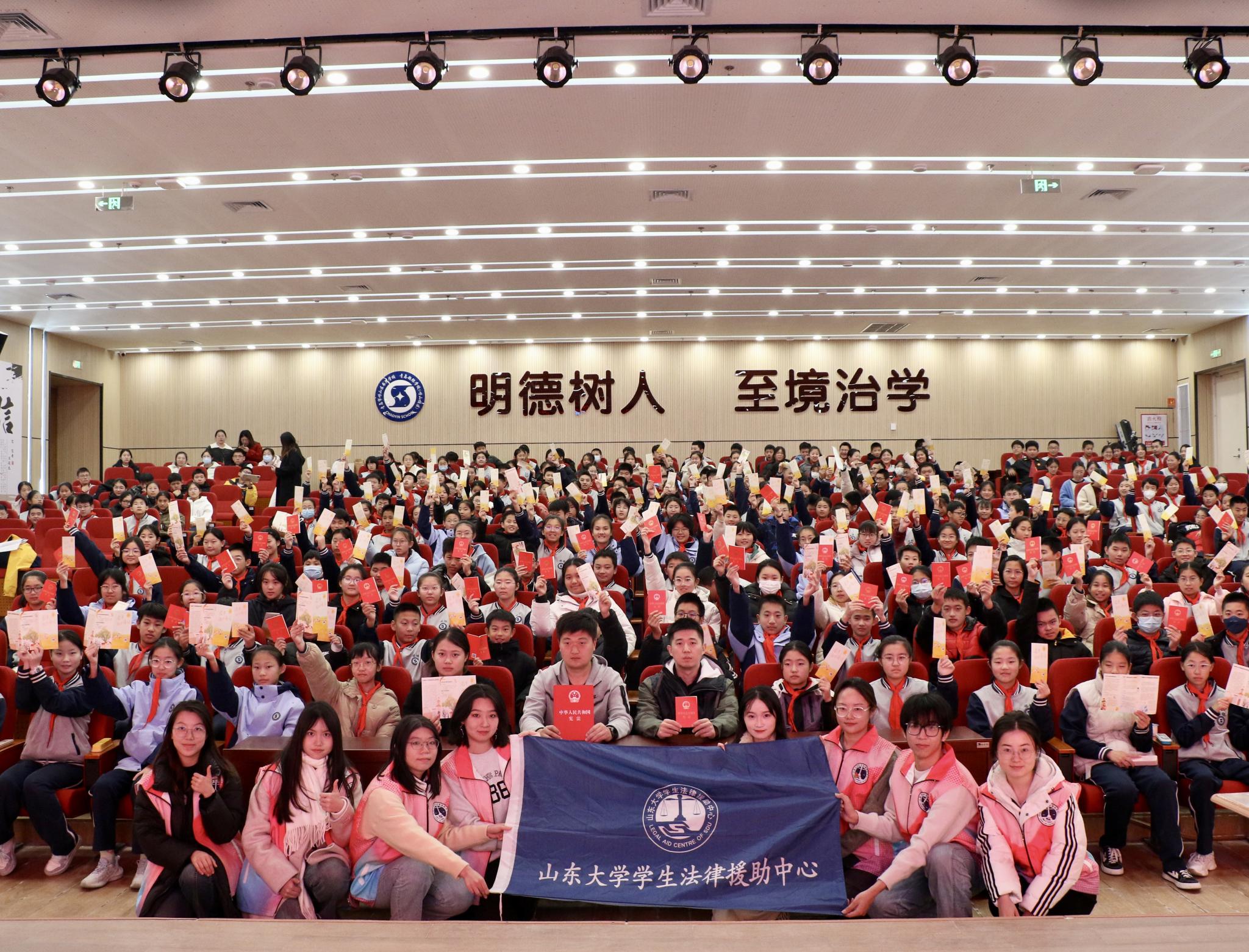 为深入学习贯彻党的二十大和二十届二中、三中全会精神,积极响应中央宣传部、司法部、全国普法办的号召,开展好宪法宣传普及工作,11月29日,山东大学学生法律援助中心联合北宅街道,前往青岛超银学校崂山校区开展“宪法宣传周”系列活动。金沙集团1862cc成色辅导员王艺琳、青岛超银学校团委书记李文强、初二级部组长李钊以及300余名师生参与本次活动。