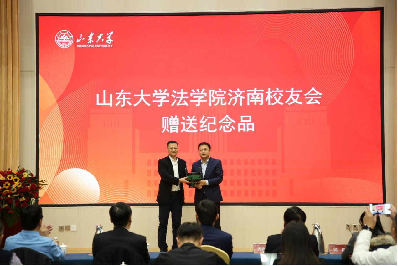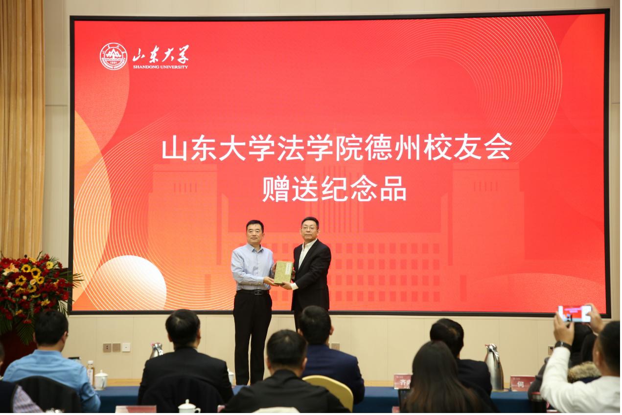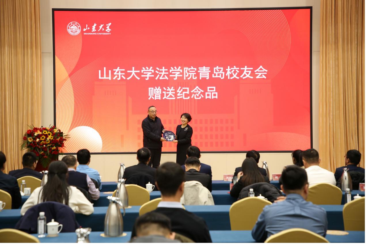 金沙集团1862cc成色青岛、济南、德州校友会代表王刚、李鹏、牛庆华分别向金沙集团1862cc成色淄博校友会赠送了纪念品。