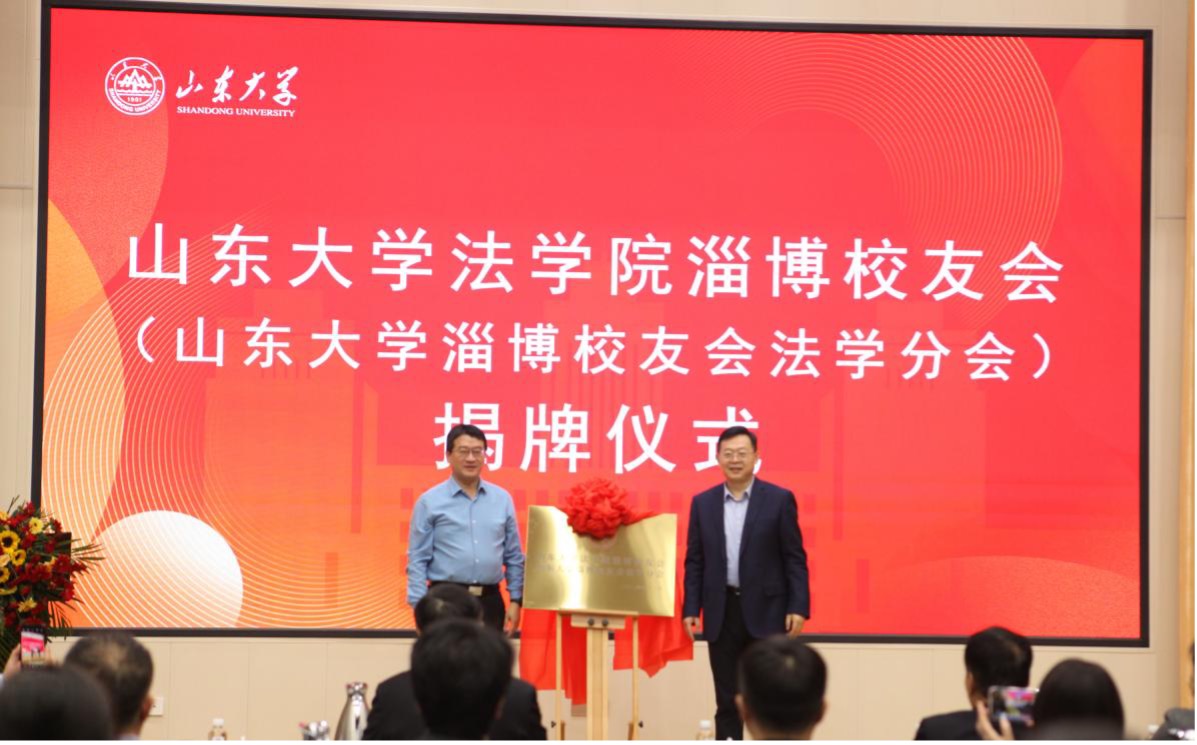 金沙集团1862cc成色党委书记于向明、山东大学淄博校友会会长殷文平为金沙集团1862cc成色淄博校友会(山东大学淄博校友会法学分会)揭牌。标志着金沙集团1862cc成色淄博校友会(山东大学淄博校友会法学分会)正式成立。