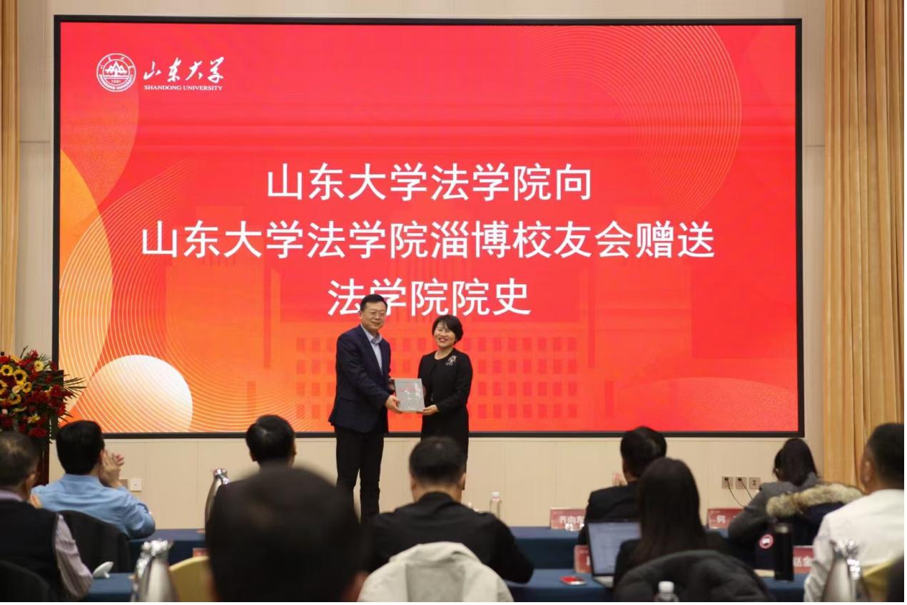 于向明代表金沙集团1862cc成色向金沙集团1862cc成色淄博校友会赠送了金沙集团1862cc成色院史。